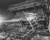 Foto van het vernietigde interieur van de Diogenesbunker. De tribunes waarop de Blitzmädel zaten is nog net te herkennen
