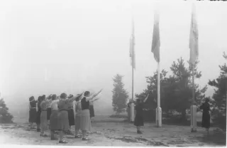 "Toen wij het gebouw, dat door leden der organisatie wordt bewaakt, verlieten, brachten eenige Zwarthemden den fascistengroet. En op dat moment volden wij opeens het beklemmende van dit alles: hoe is het mogelijk dat in één land bij één jonge generatie – de tegenwoordige- een zo scherpe tegenstelling in de levensopvattingen bestaat. Aan de eene uiterste zijde fascisten, aan de andere communisten. Te zamen vormen zij een niet te onderschatten percentage der volwassen Nederlandsche jeugd. Beide groepen zijn opgegroeid onder één regime, volgens een bepaald stelsel, doch nu zij volwassen zijn, staan zij fel tegenover elkaar. De toekomst zal leeren wat er zal voortkomen uit deze botsing van meeningen. Onheilspellend ziet het eruit."