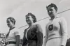 De Olympische Spelen in 1936. Vrouwen op erepodium. Rie Mastenbroek staat in het midden.