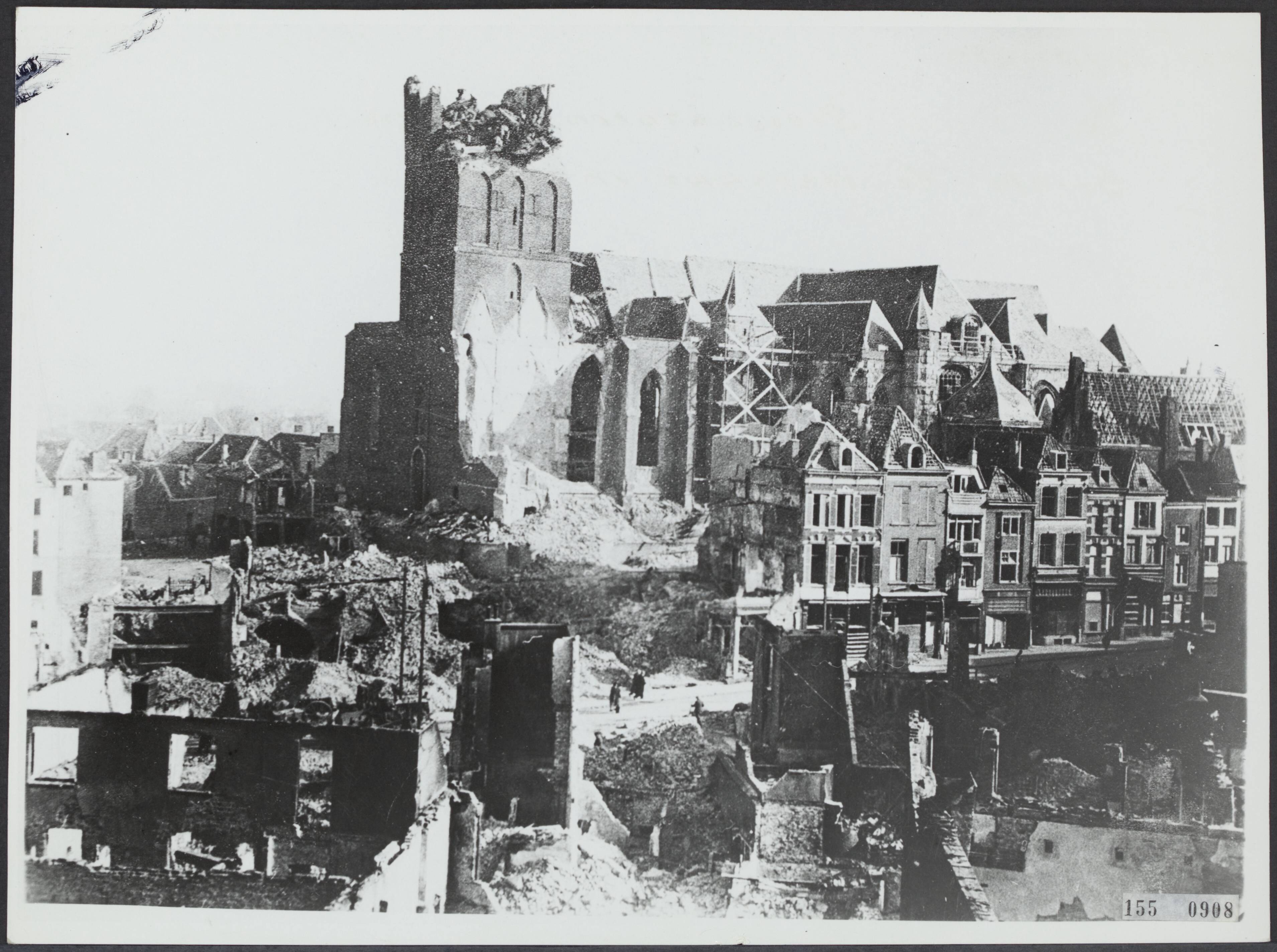 Nijmegen. De Sint-Stevenstoren met de Stikke Hezelstraat in 1944