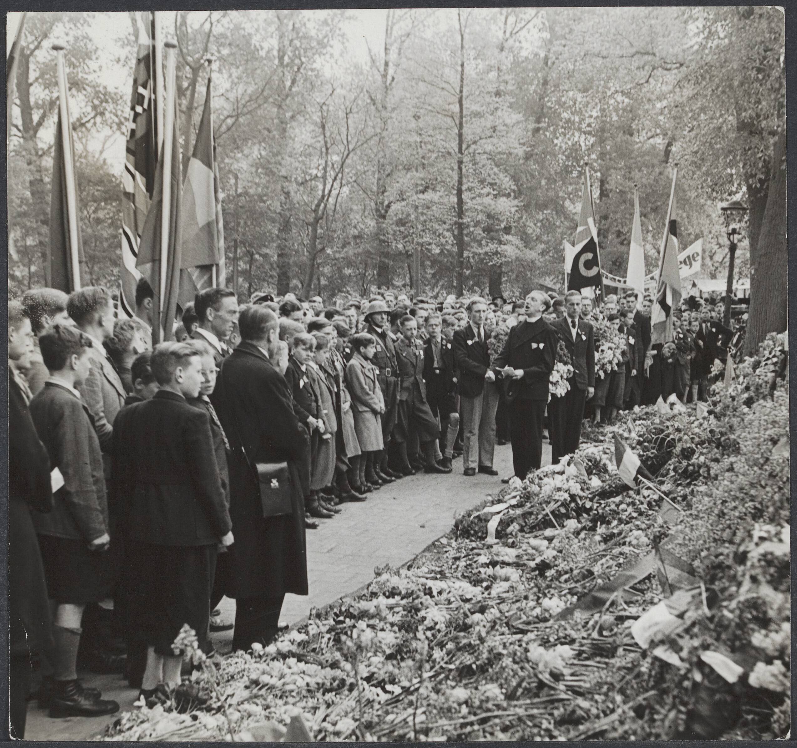 Hulde aan de nagedachtenis van de slachtoffers die gevallen zijn uit repressaille voor de aanslag op Rauter, de hoogste Duitse pol...