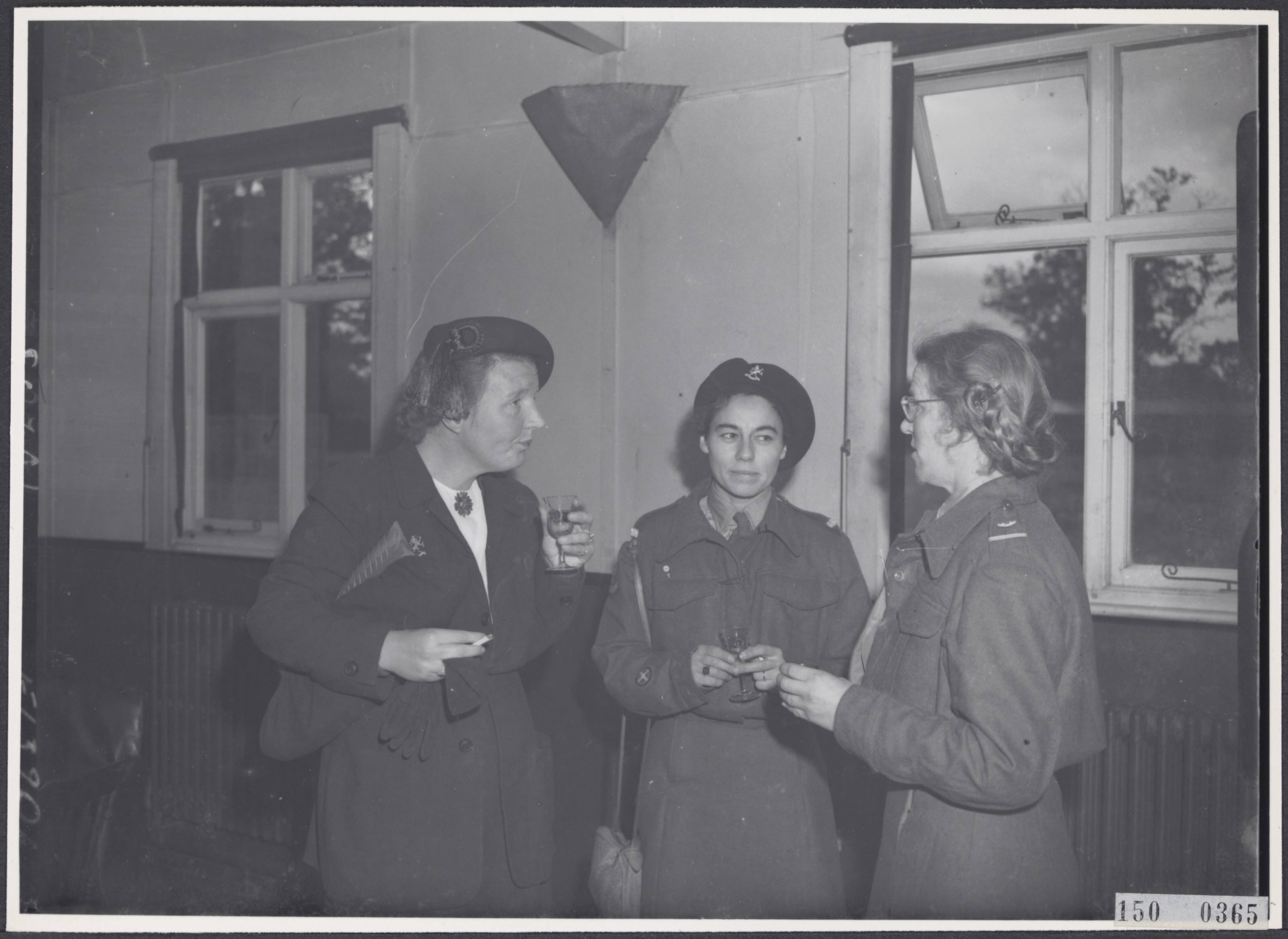 Prinses Juliana bezoekt het Vrouwen Hulp Korps. In het midden Emmy Rutten