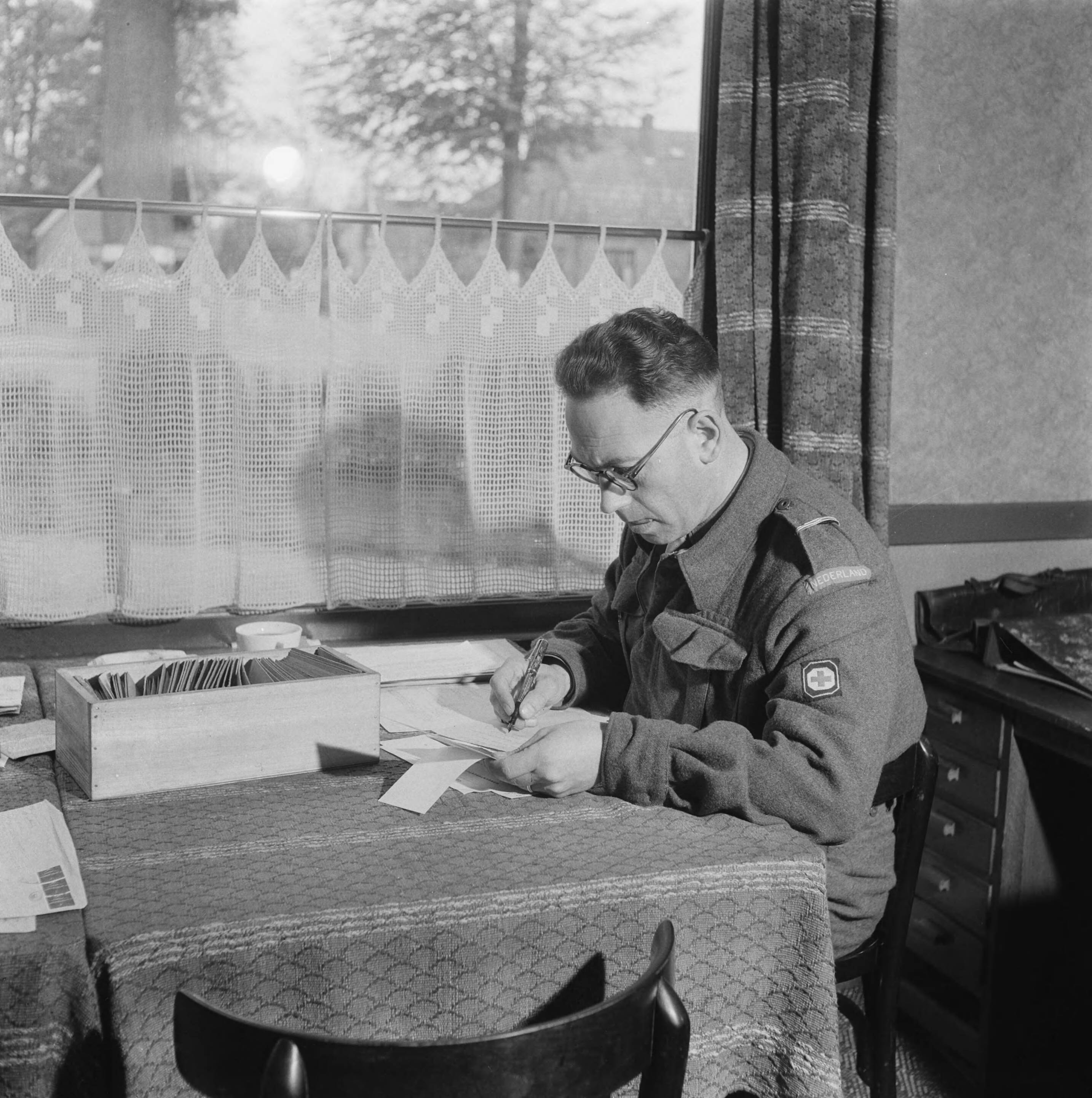 Administratie van de afgevoerden en vermisten door de heer Punt. Hij is de eigenaar van een café, en is nu de leider van de Rode Kruis actie in Putten. Hij heeft alle namen en foto's van de mannen die stierven