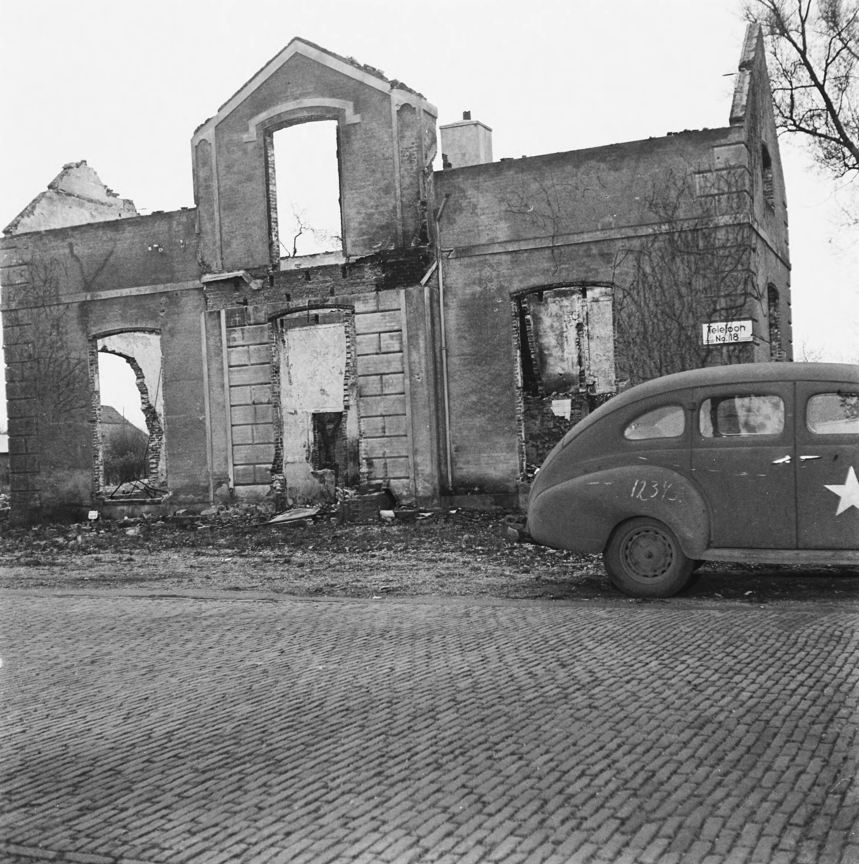 Een van de 105 huizen die door de Duitsers in brand zijn gestoken als represaillemaatregel voor een aanslag op een Duitse militair