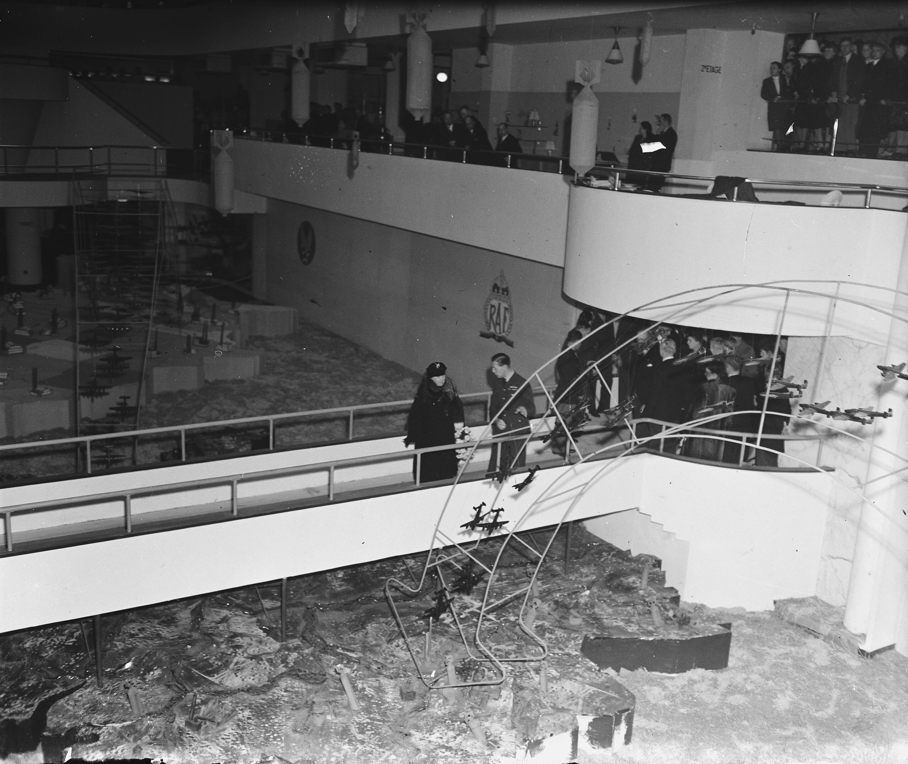 Koningin Wilhelmina wordt rondgeleid door kapitein G. Rutten