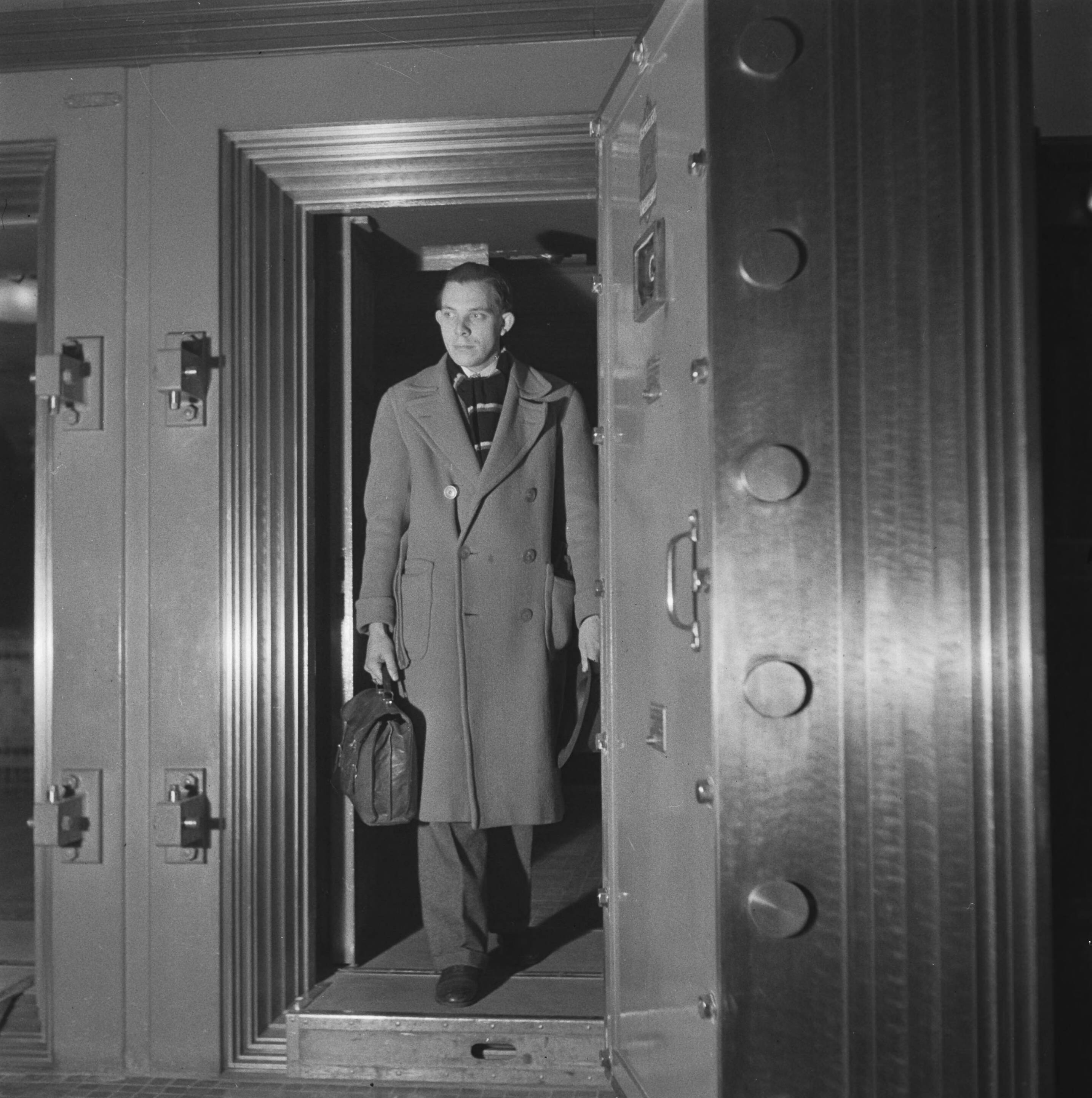 Registratie van effecten man komt met tas uit een bankkluis