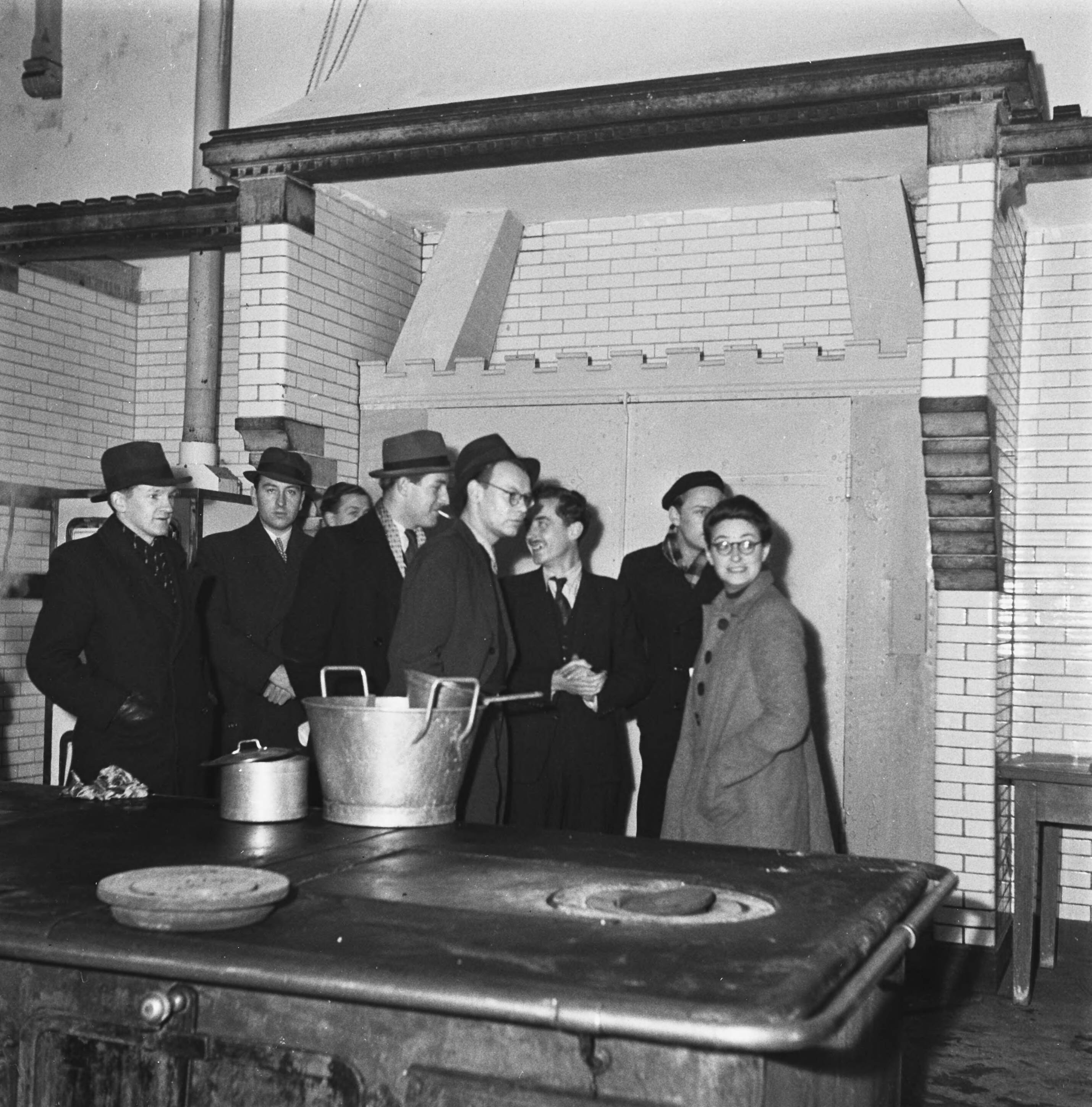 Herstellingsoord Stichting 1940-1945 voor illegale werkers in Paleis Het Loo. Journalisten bekijken de keuken