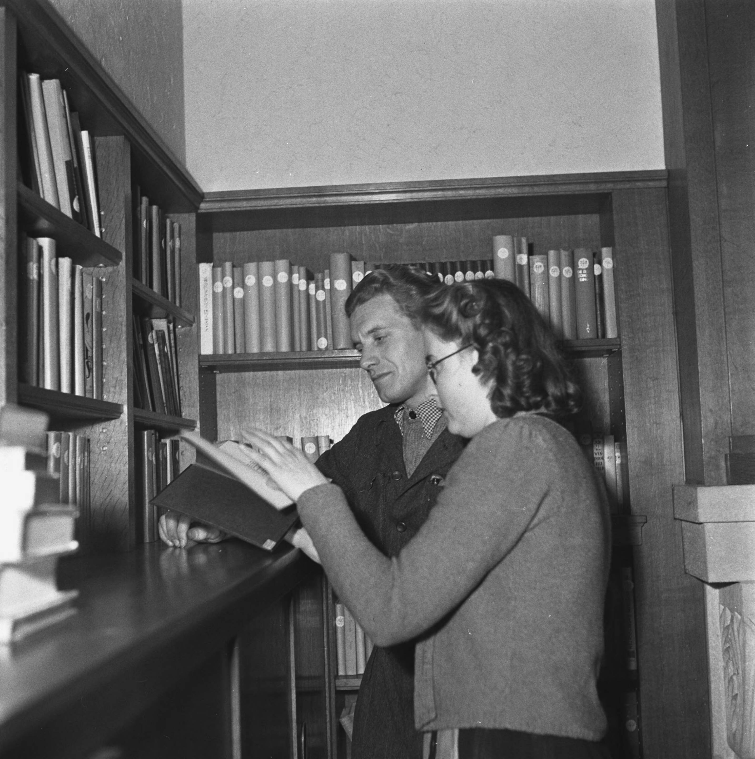 Herstellingsoord Stichting 1940-1945 voor illegale werkers in villa Kareol te Aerdenhout. In de bibliotheek