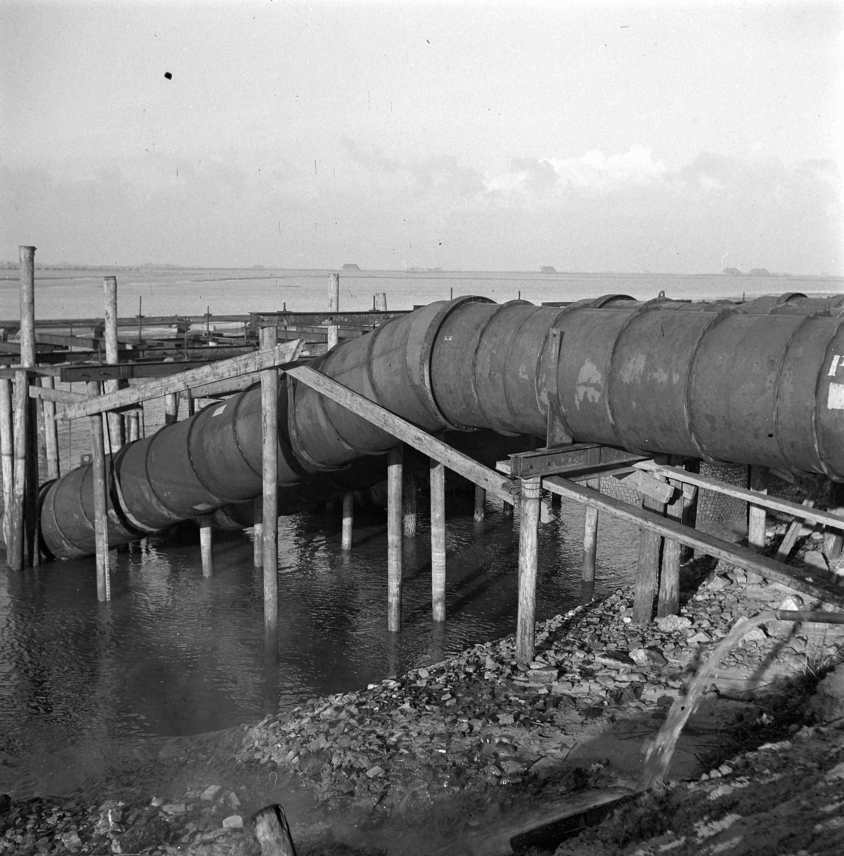 Wieringermeer. Bij Medemblik werden hulpgemalen ingezet (voorjaar 1945) om de Wieringermeerpolder zo snel mogelijk weer droog te krijgen na de inundatie.