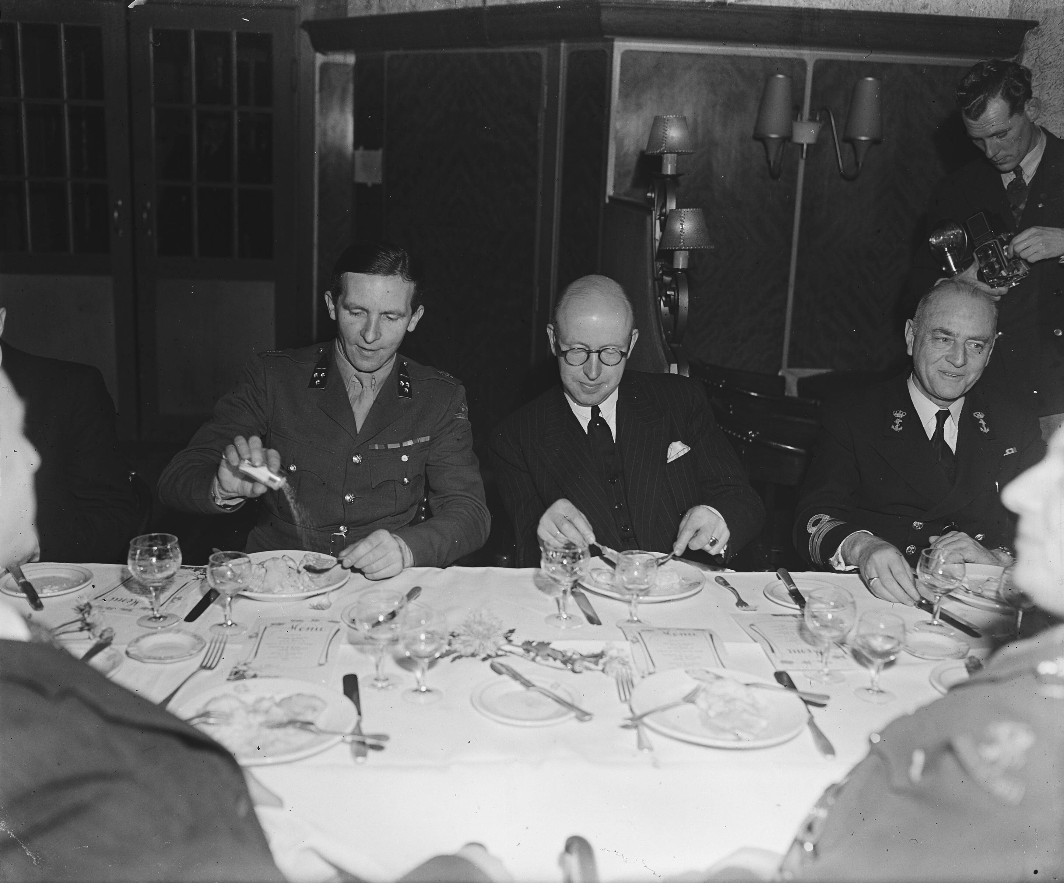 Afscheidsdiner Militair Gezag voor chef-staf generaal H.J. Kruls. In het midden minister P. Lieftinck