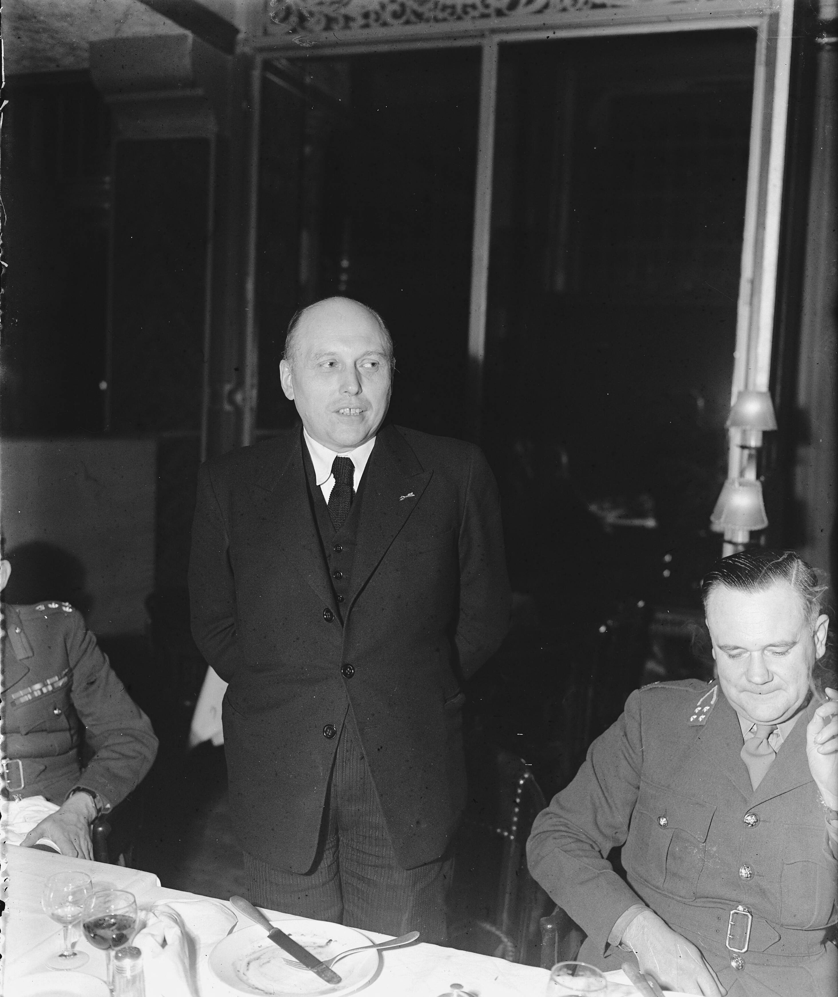 Afscheidsdiner Militair Gezag voor chef-staf generaal H.J. Kruls. Minister-president W. Schermerhorn