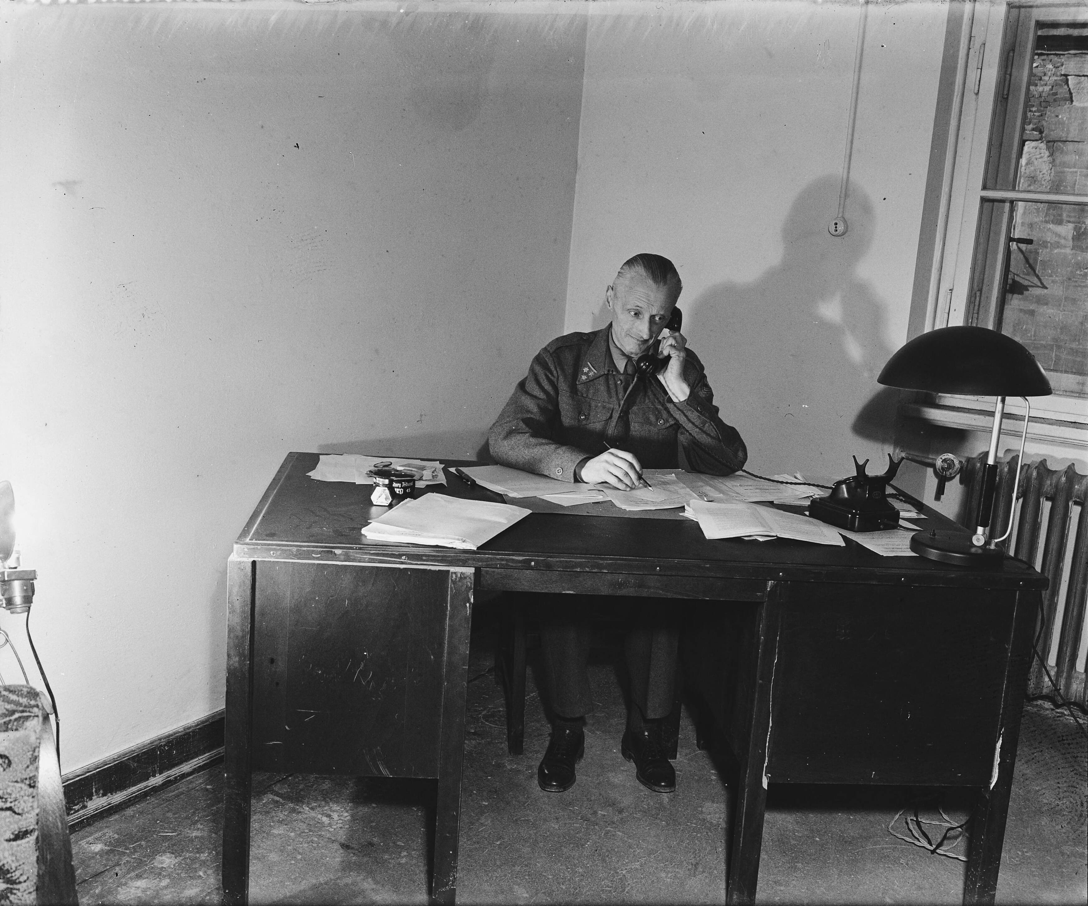 Proces Neurenberg. Kolonel A.M. baron van Tuyll van Serooskerken die Nederland in het proces vertegenwoordigt