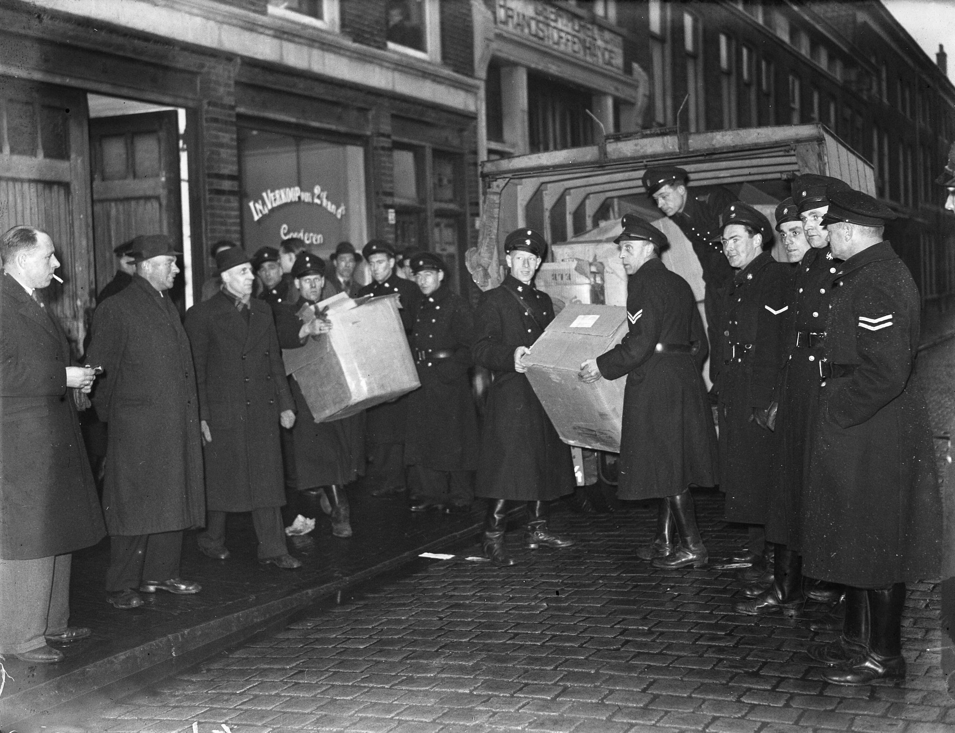 Zwarthandel. In de "zwartste" straat van Den Haag, de Hemsterhuisstraat, is dezer dagen het grote offensief tegen de gifhandel ingezet. Huis aan huis werd een kijkje genomen naar de voorraad van de "Zwarte Pieten". Tijdens deze actie was de hele buurt door een sterke politiemacht hermetisch afgesloten