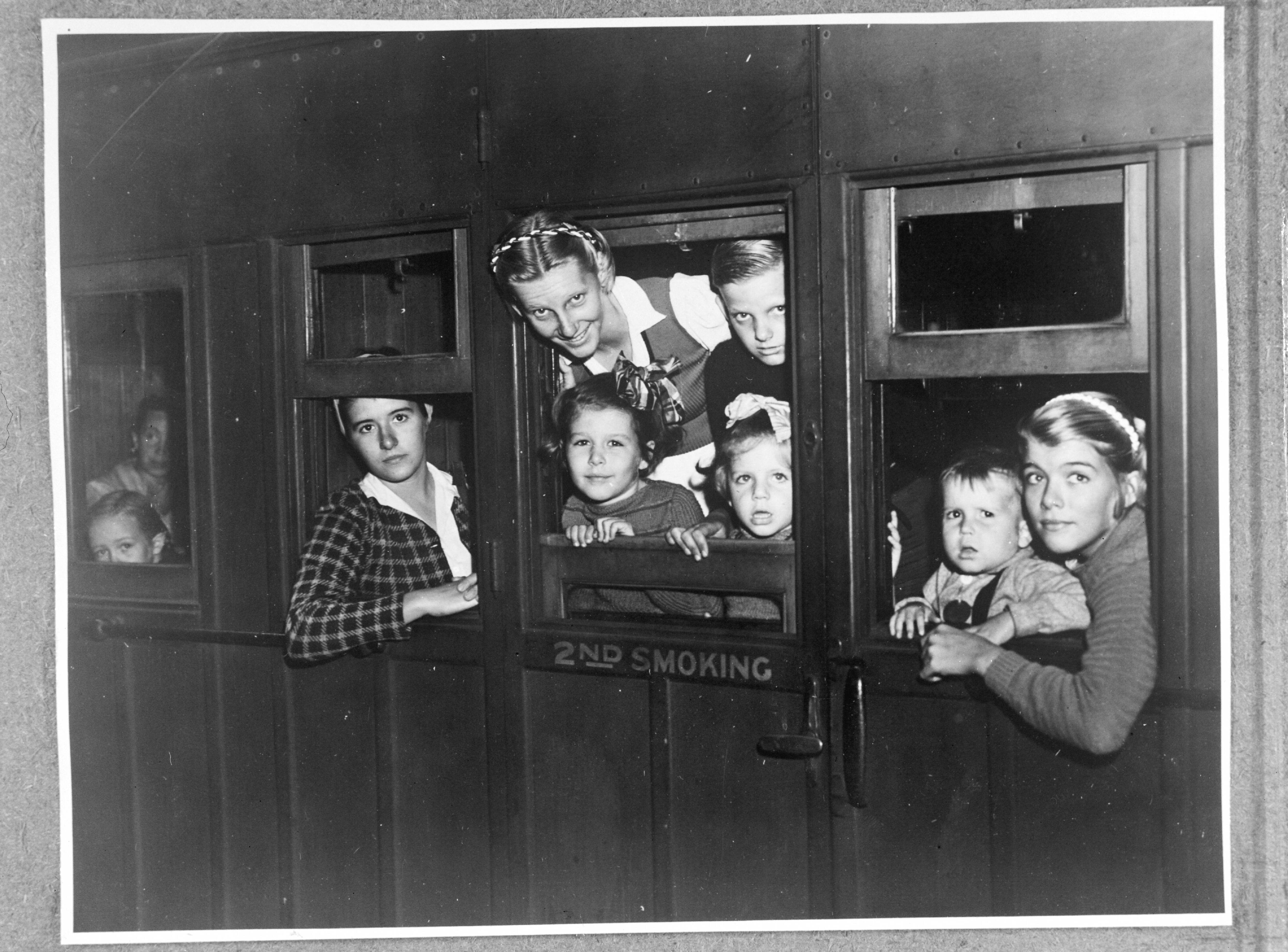 De "Oranjefontein" met aan boord Nederlandse geïnterneerden uit Japanse gevangenkampen in Batavia (Nederlands-Indië) arriveert in Melbourne op 27 oktober 1945. In de trein die hen naar de herstellingsoorden zal brengen