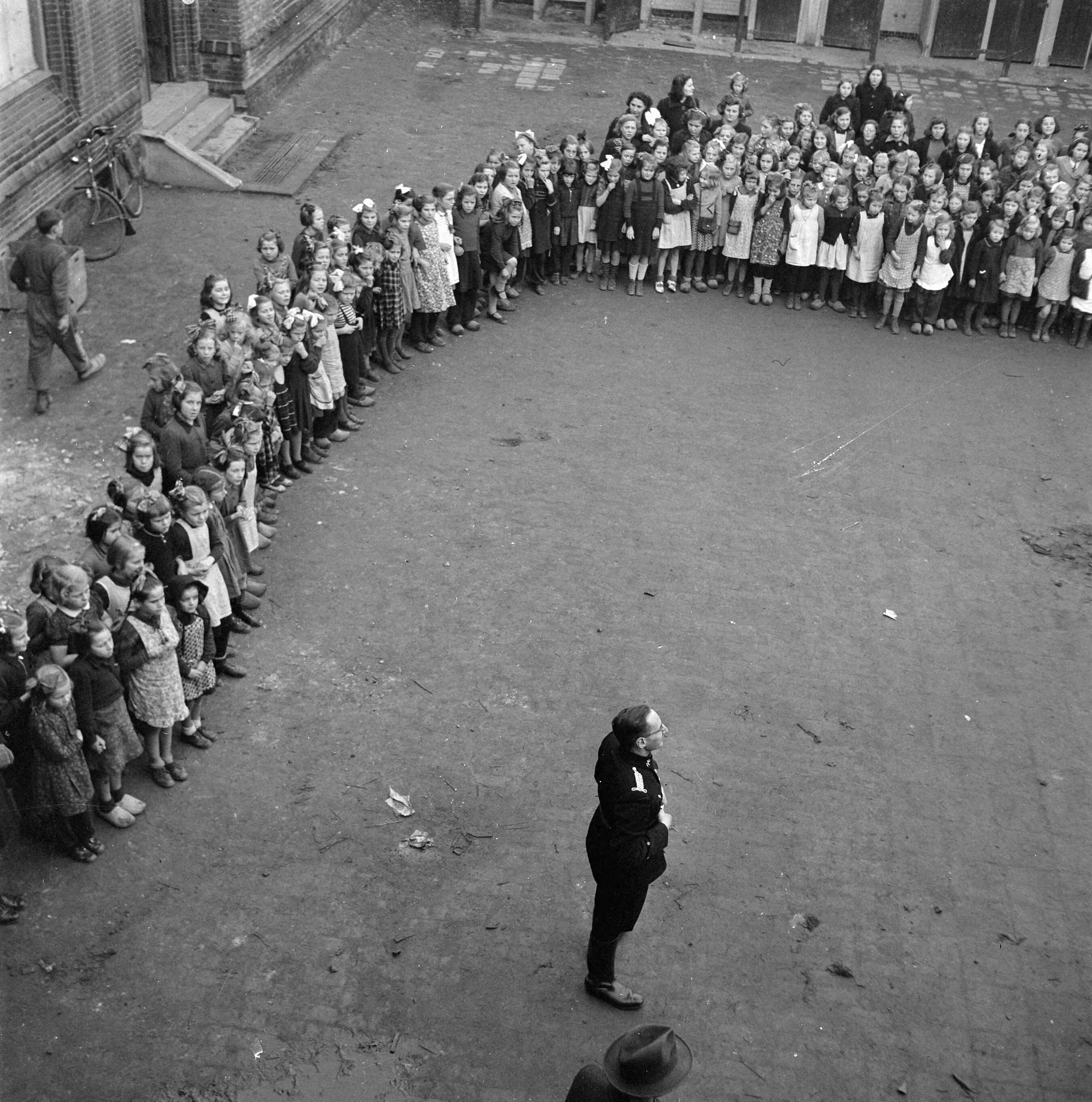 Zuid-Nederland. Reportage over de gevaren van mijnen en achtergelaten munitie voor spelende kinderen. Toespraken van brandweer en politie tot de kinderen. Ensceneringen van ongevallen