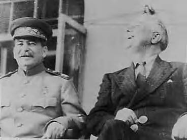 Archieffoto. Vergadering "Grote Drie" in Teheran. Veranda Russische ambassade, Stalin en Roosevelt