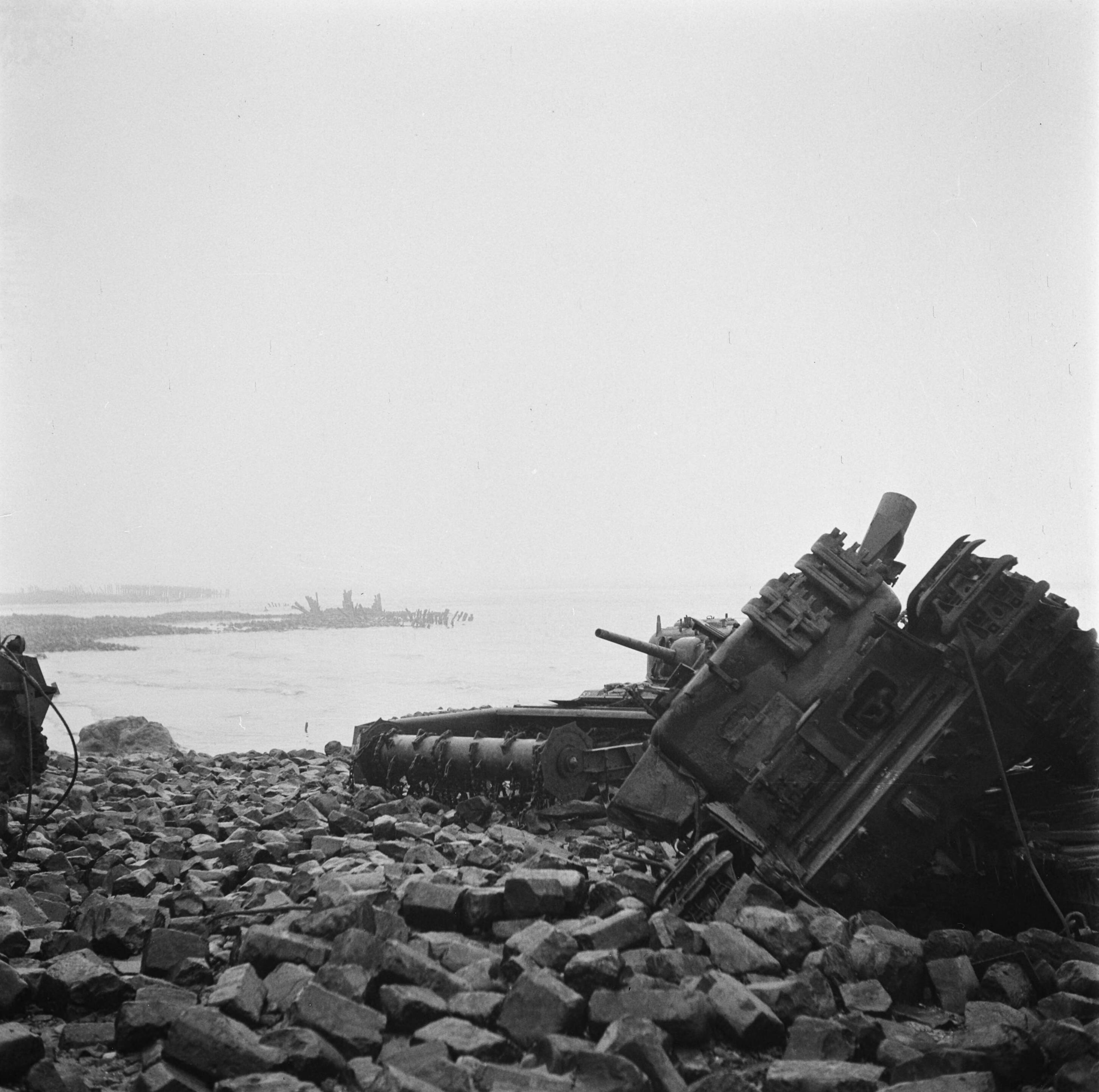 Reportage van het oorlogsgebied na de slag om de Scheldemonding (Westkapelle)