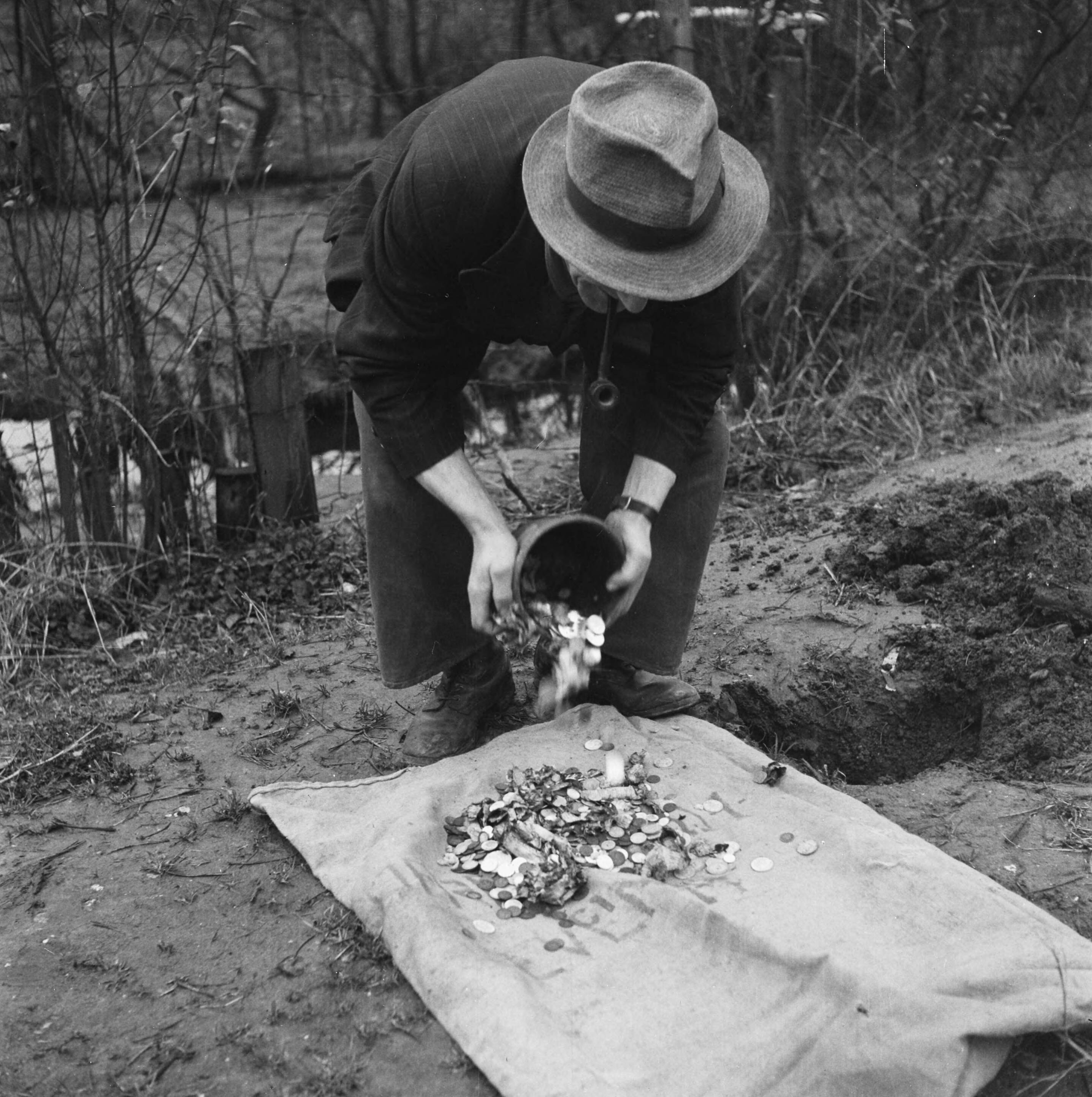 Een inwoner van Venlo graaft na de bevrijding zijn bezittingen op
