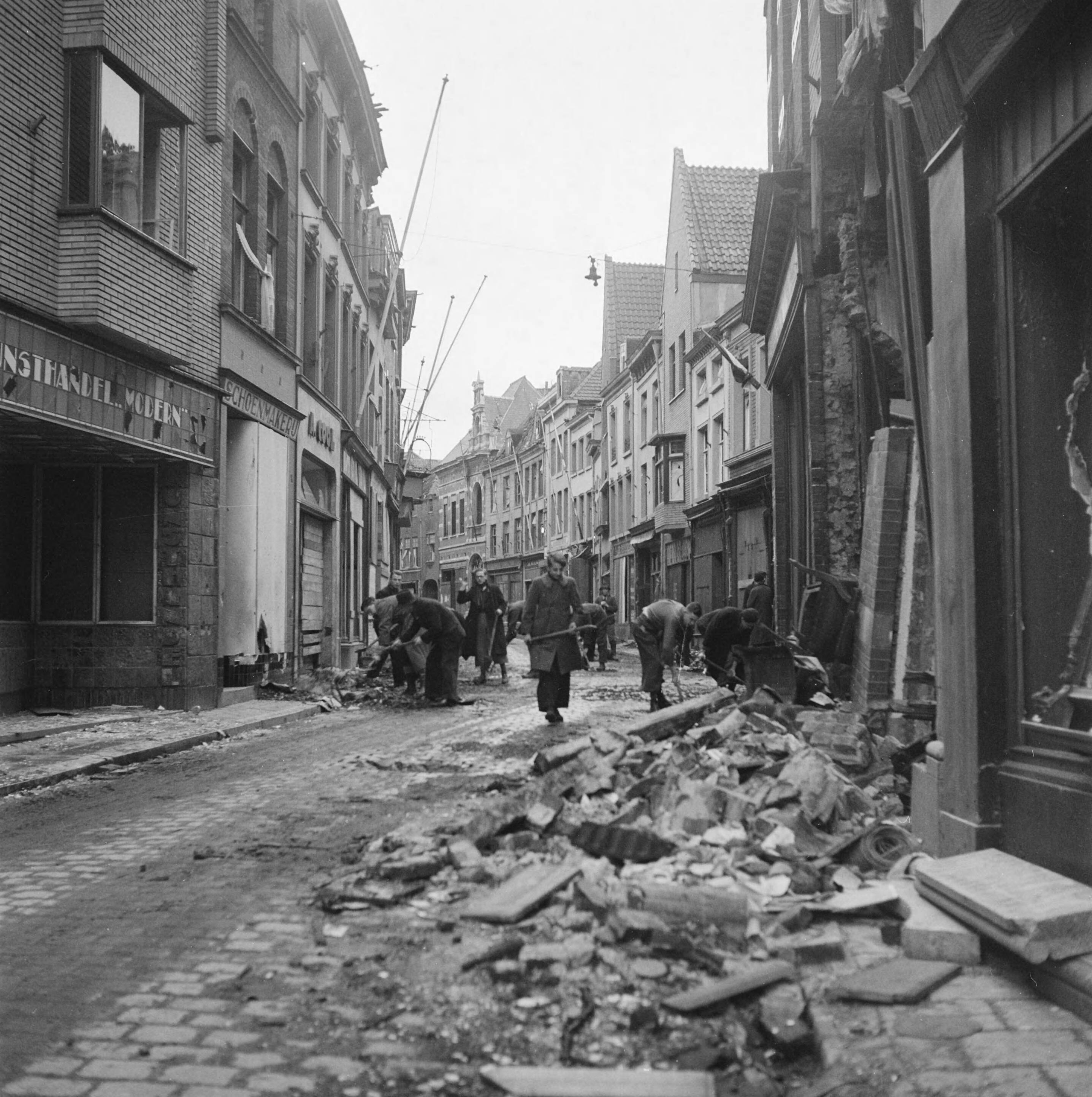 Na de bevrijding van Venlo wordt begonnen met puinruimen