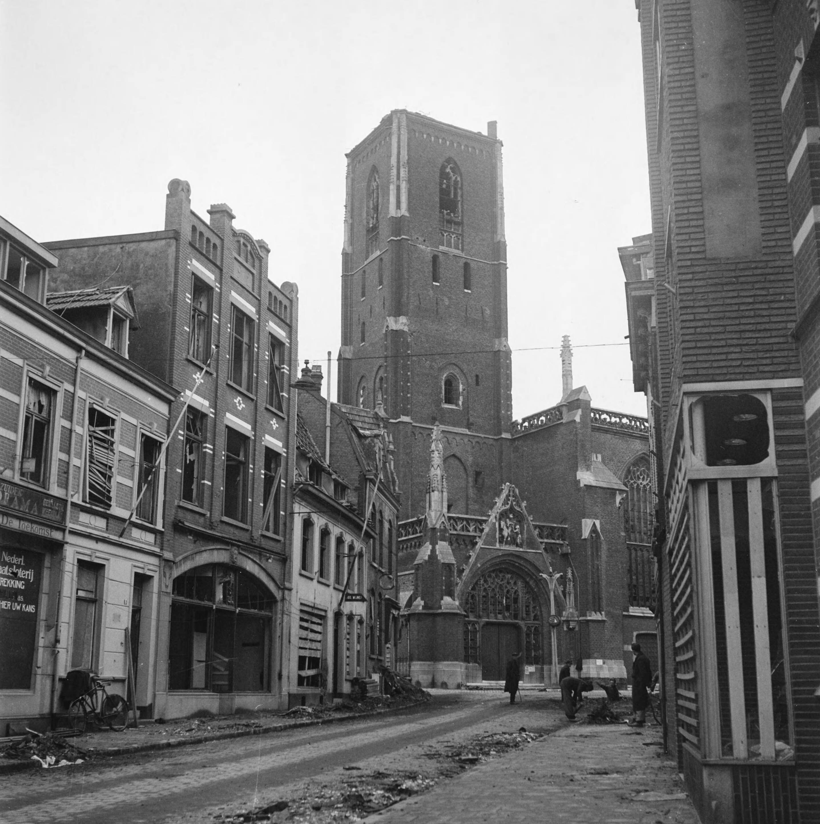Na de bevrijding van Venlo wordt begonnen met het ruimen van puin.