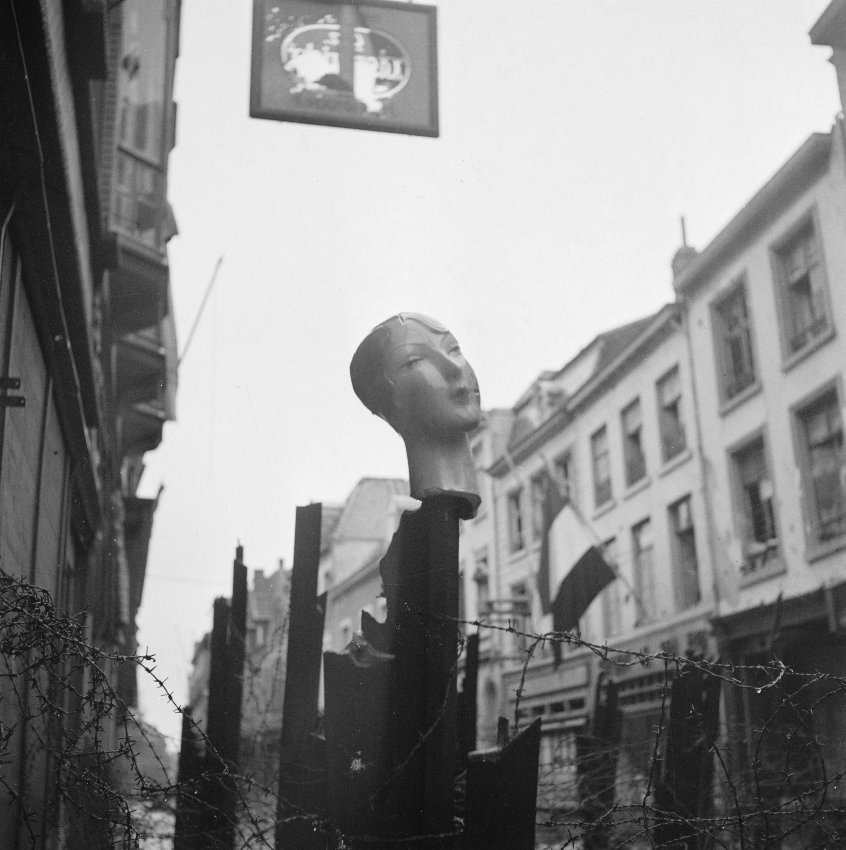 Duitse tankversperringen in de binnenstad van Roermond (Steenweg)