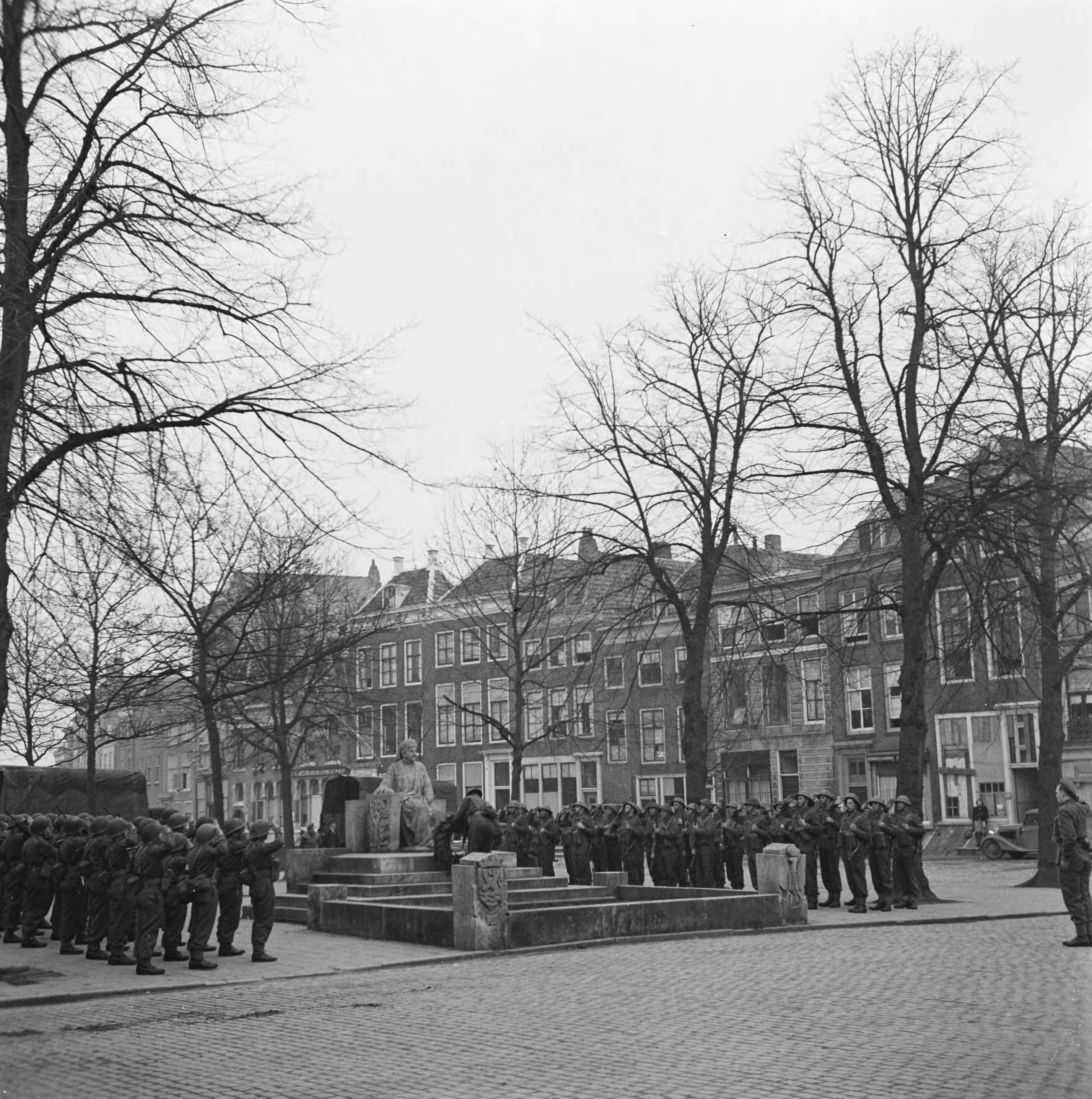 Kranslegging door het regiment Stoottroepen bij het Emmamonument in Middelburg