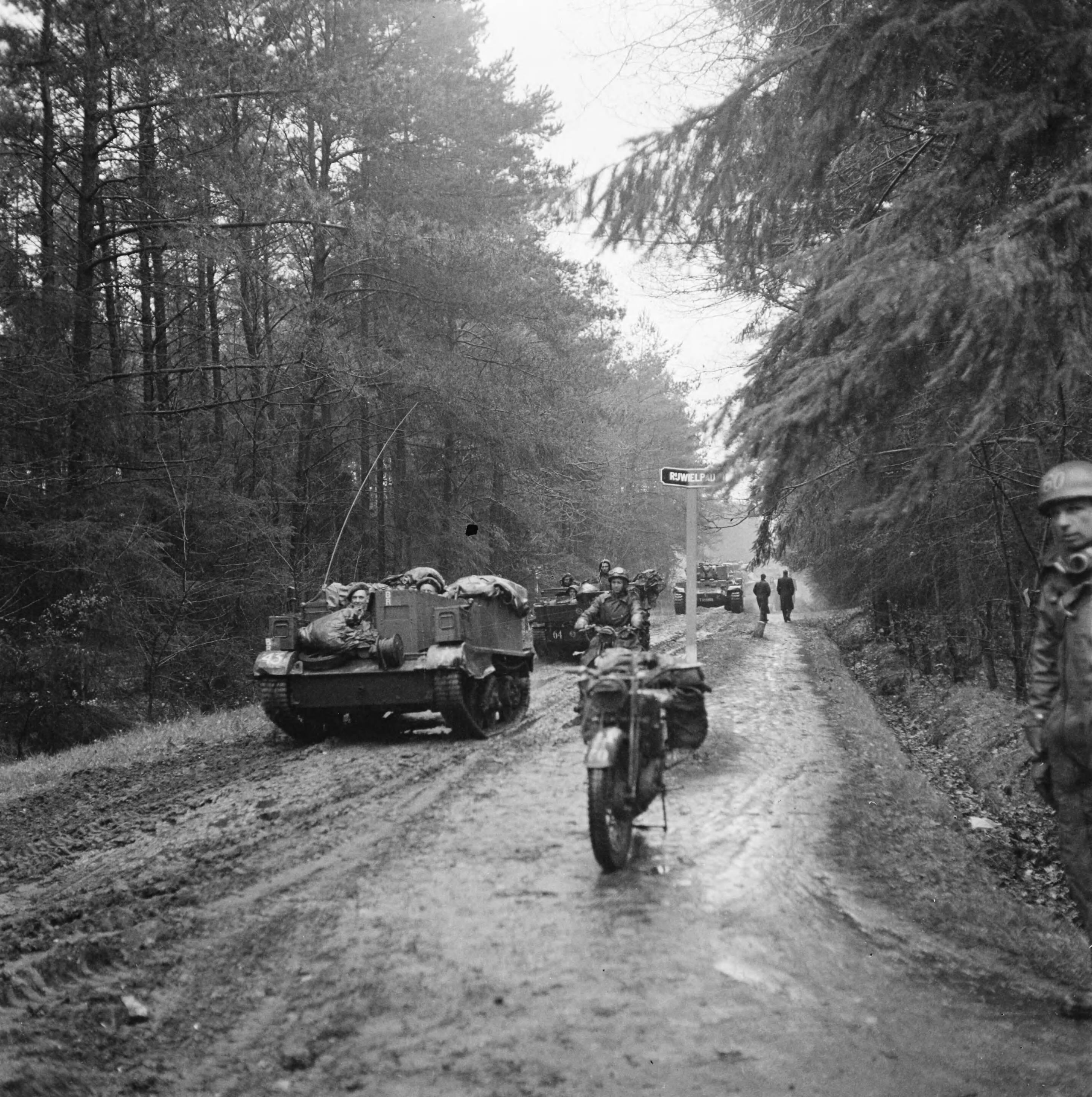 Britse pantservoertuigen (Guards Armoured Division) op weg naar Hengelo
