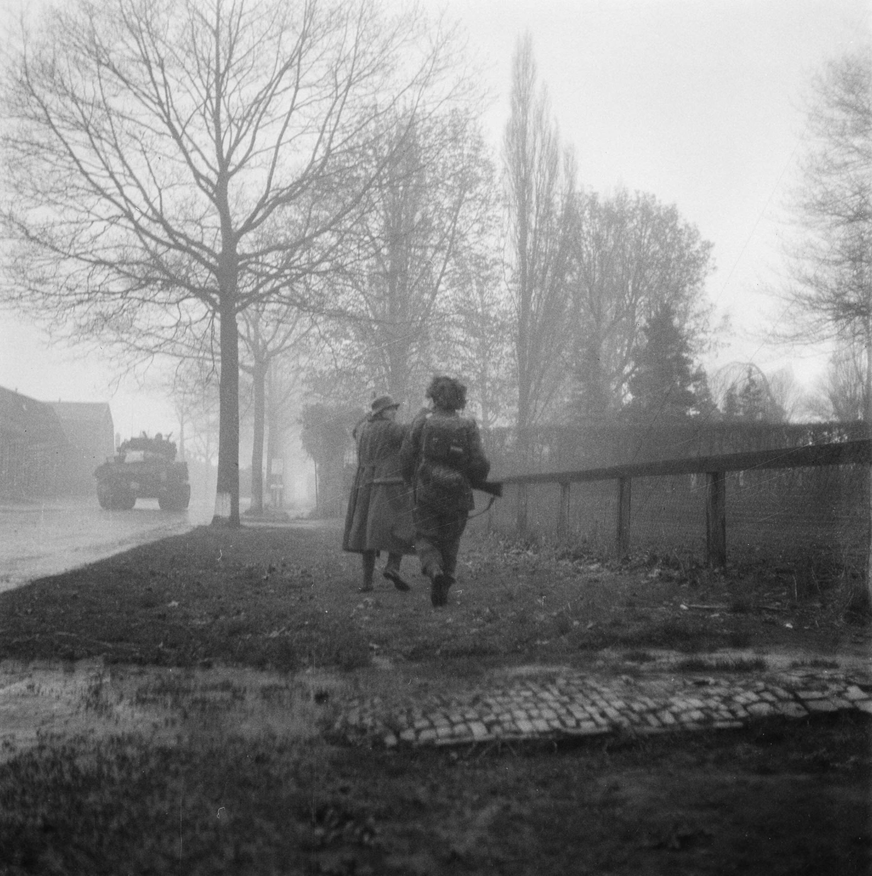 Een Duitse krijgsgevangene wordt afgevoerd