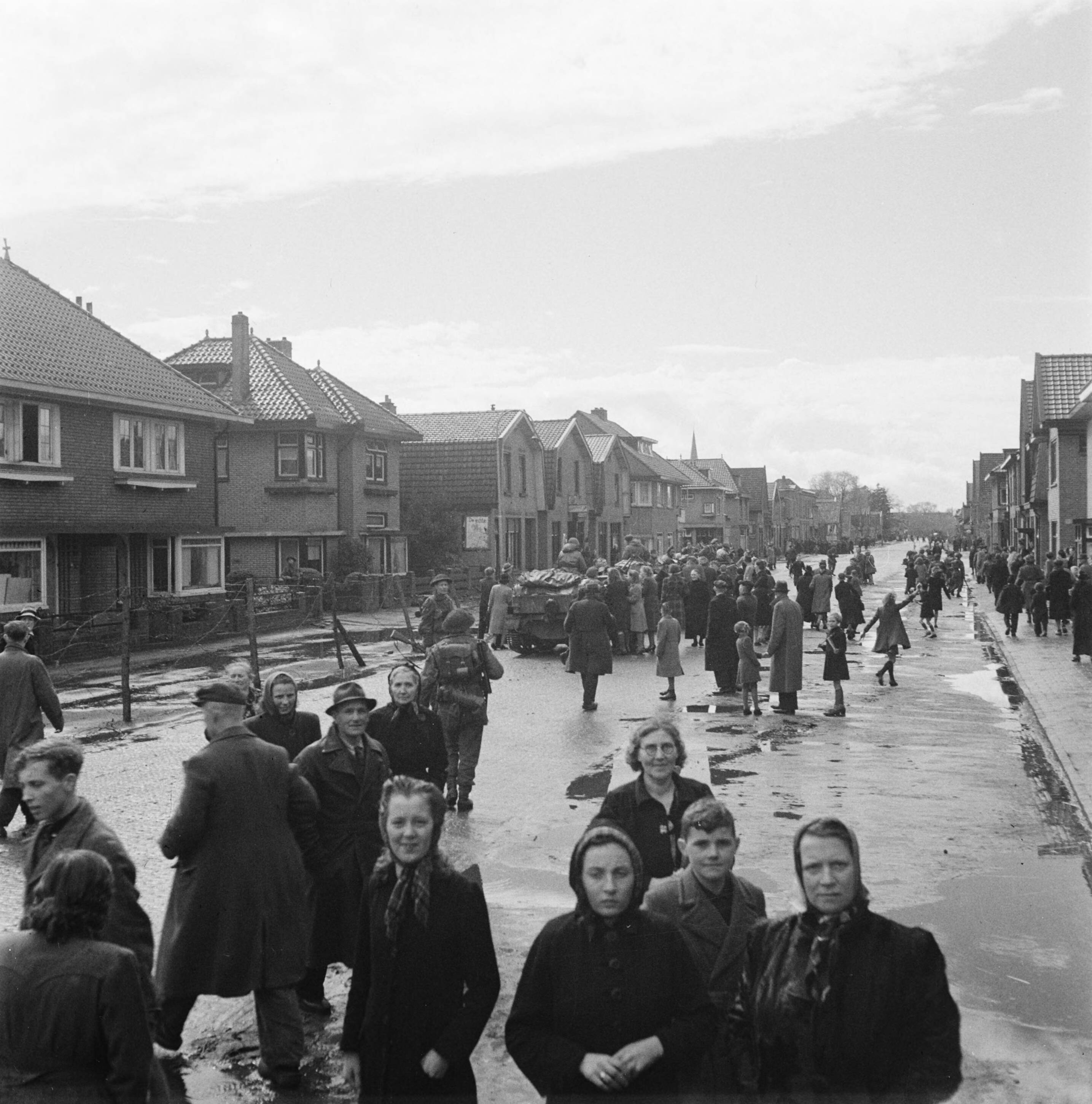 De Oldenzaalsetraat in Hengelo (Overijssel) tijdens de intocht van Canadese troepen
