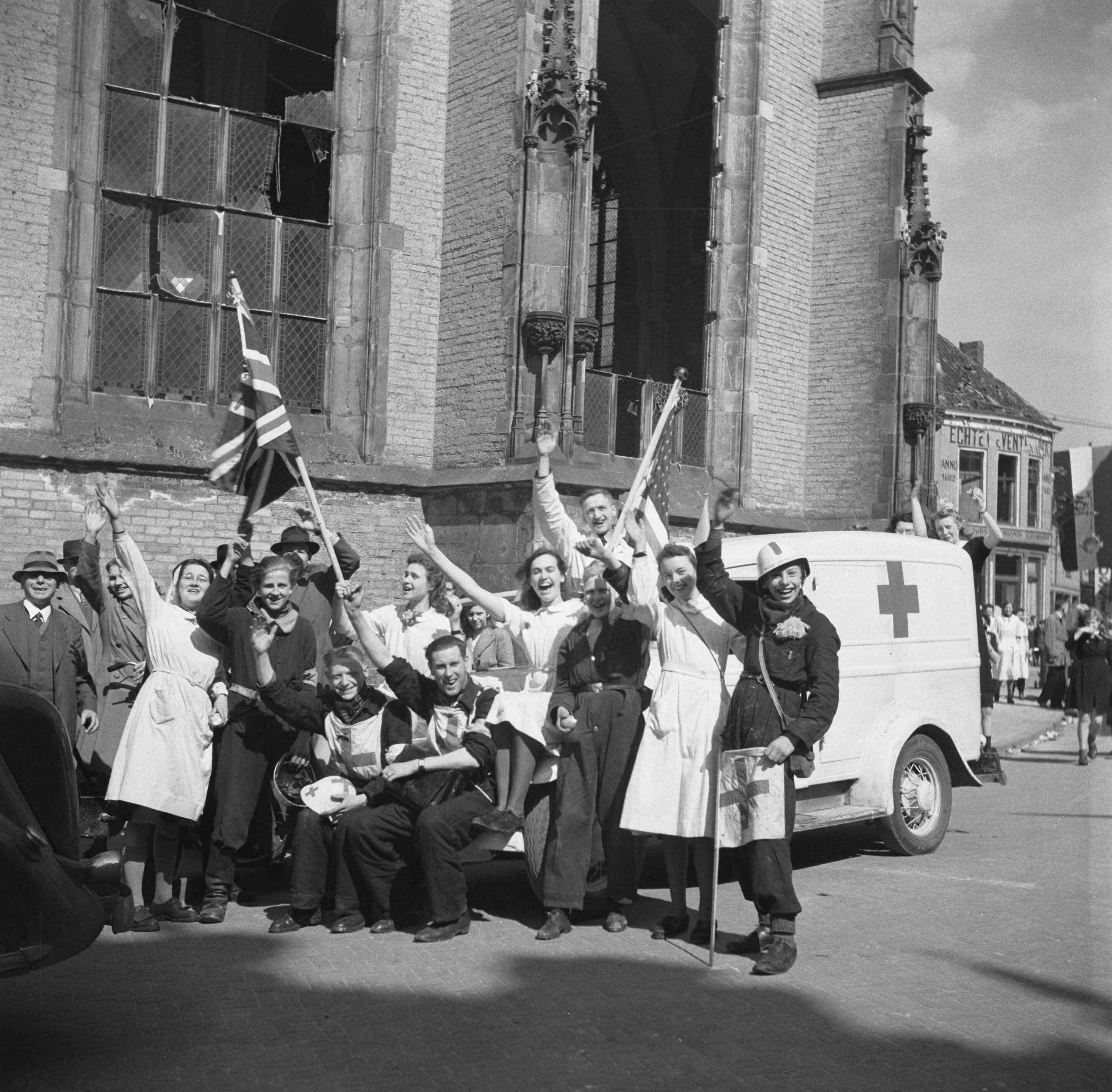 Burgers en Rode Kruis personeel uiten hun vreugde