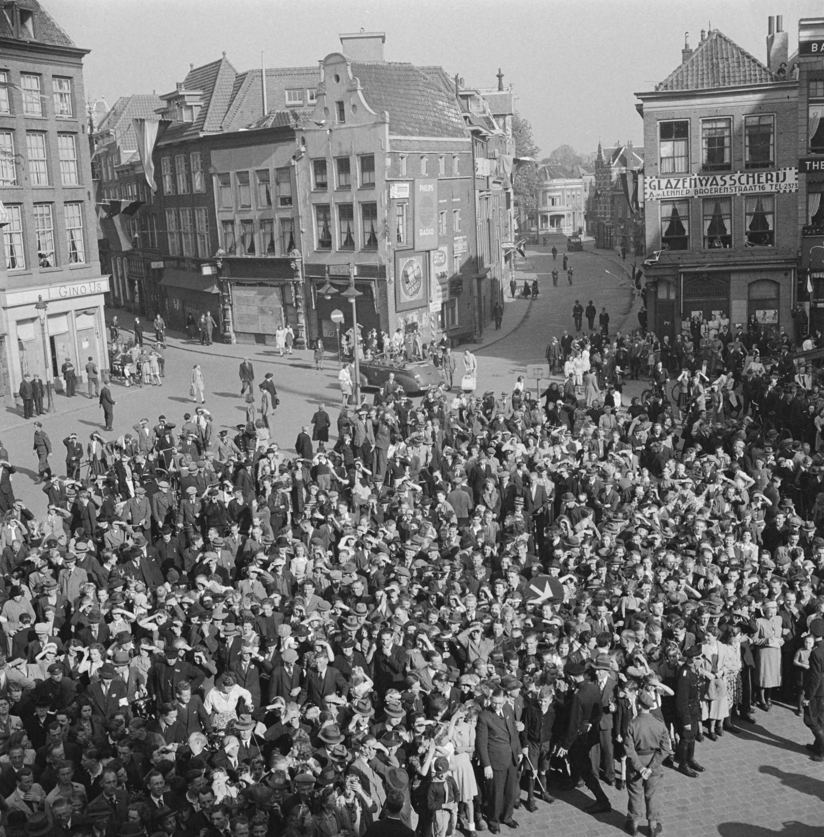 Een mensenmenigte verwelkomt de prins in Zwolle