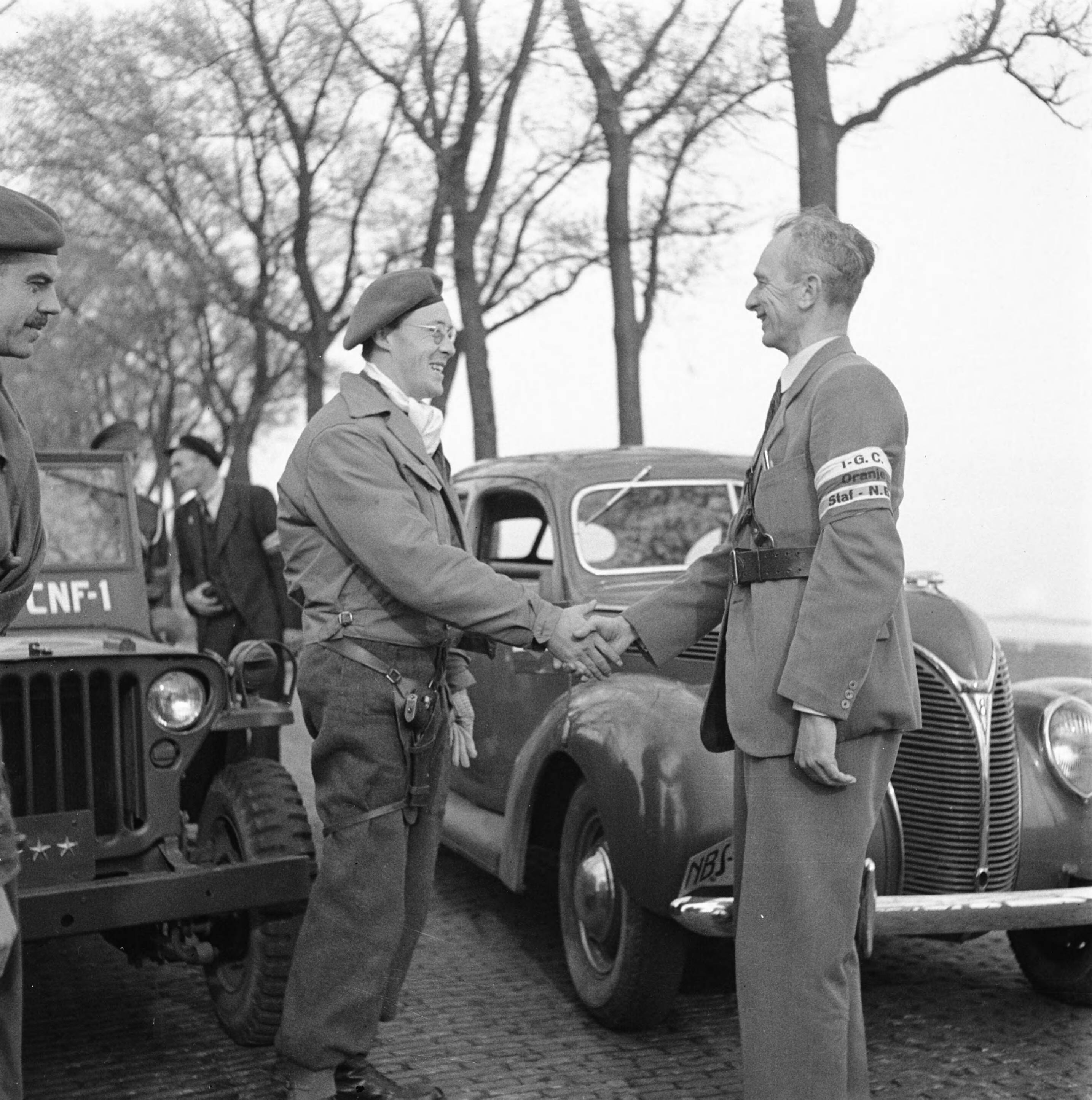 Begroeting van een staflid van de BS (Binnenlandse Strijdkrachten).