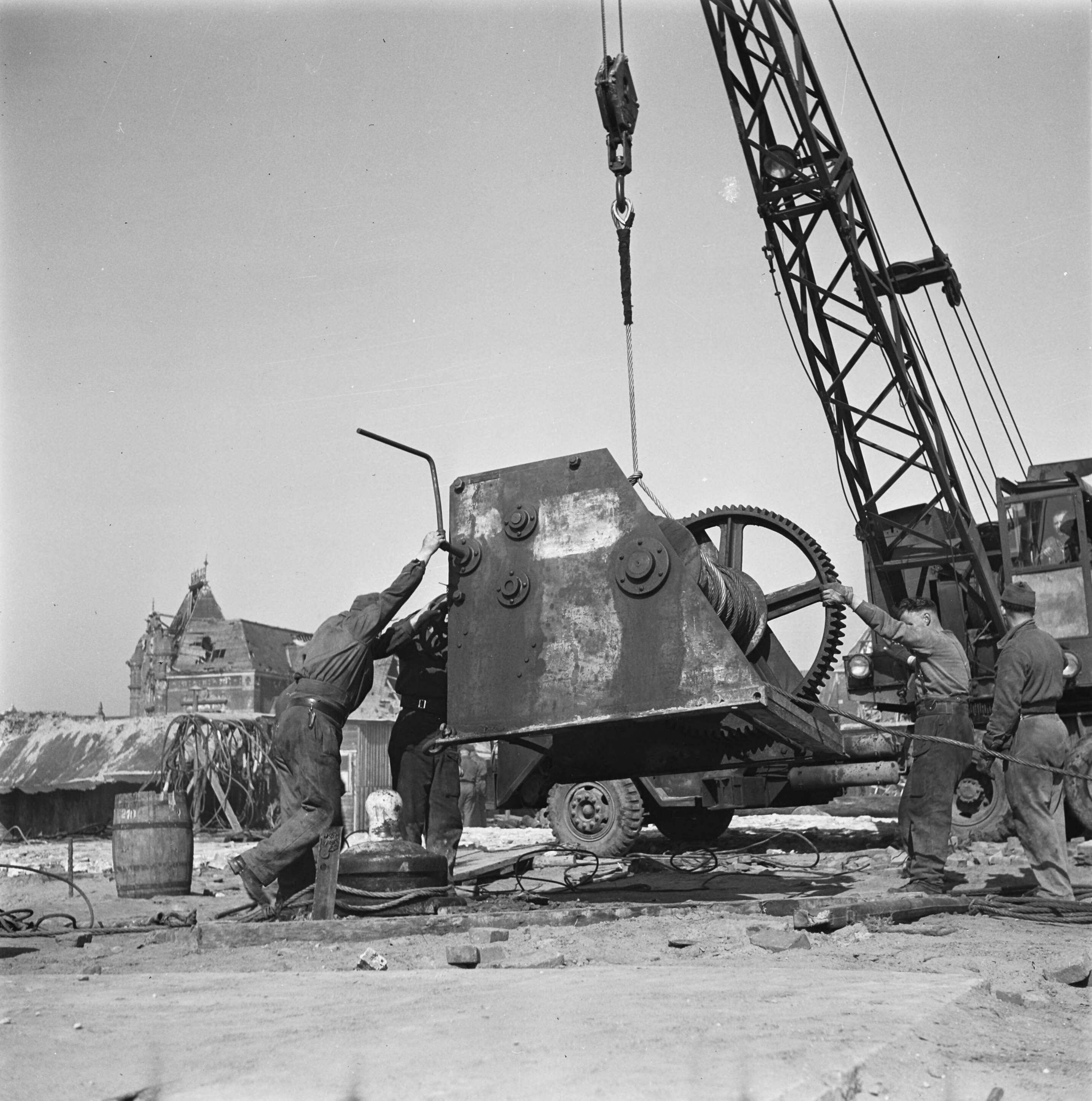 Wederopbouw Vlissingen. Herstelwerk aan een haveninstallatie