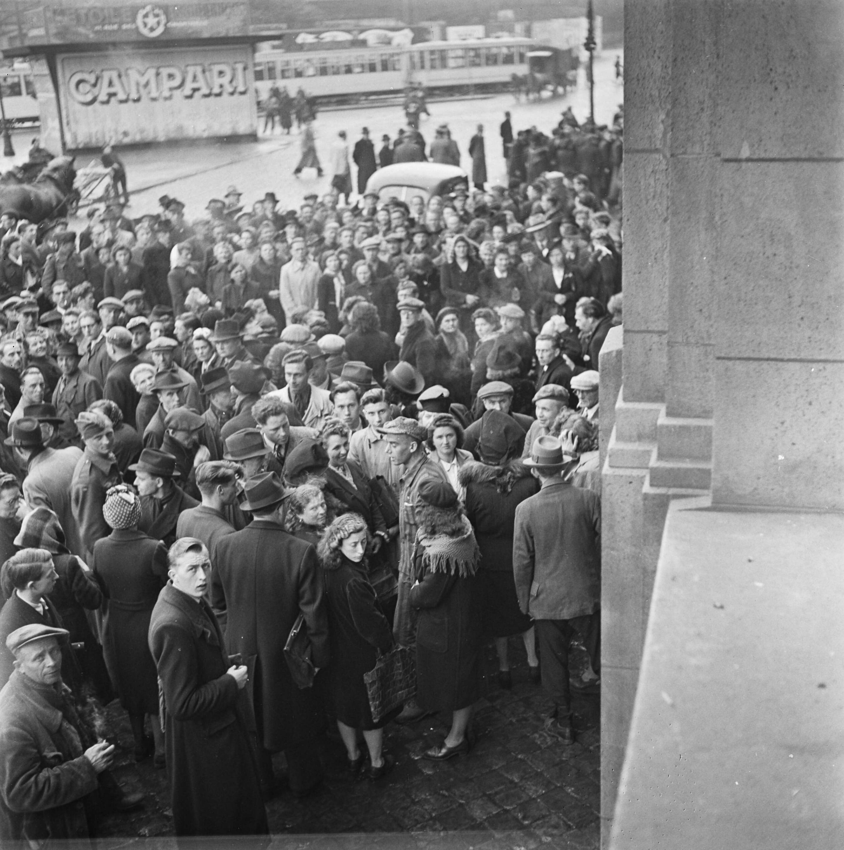 Kranslegging door bevrijde Franse politieke gevangenen op het graf van de Onbekende Soldaat te Brussel.