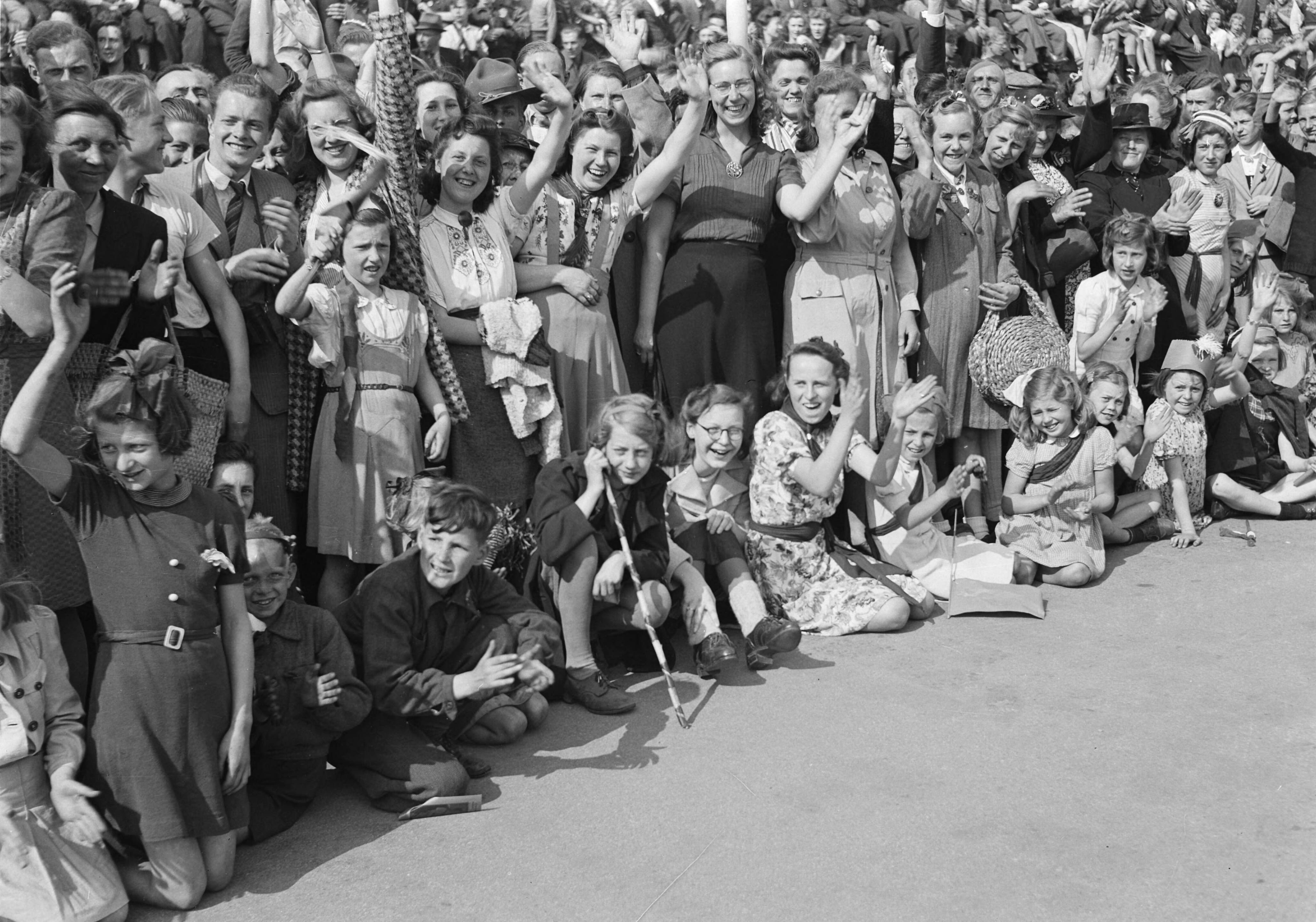 Juichende menigte op het Marktplein te Apeldoorn