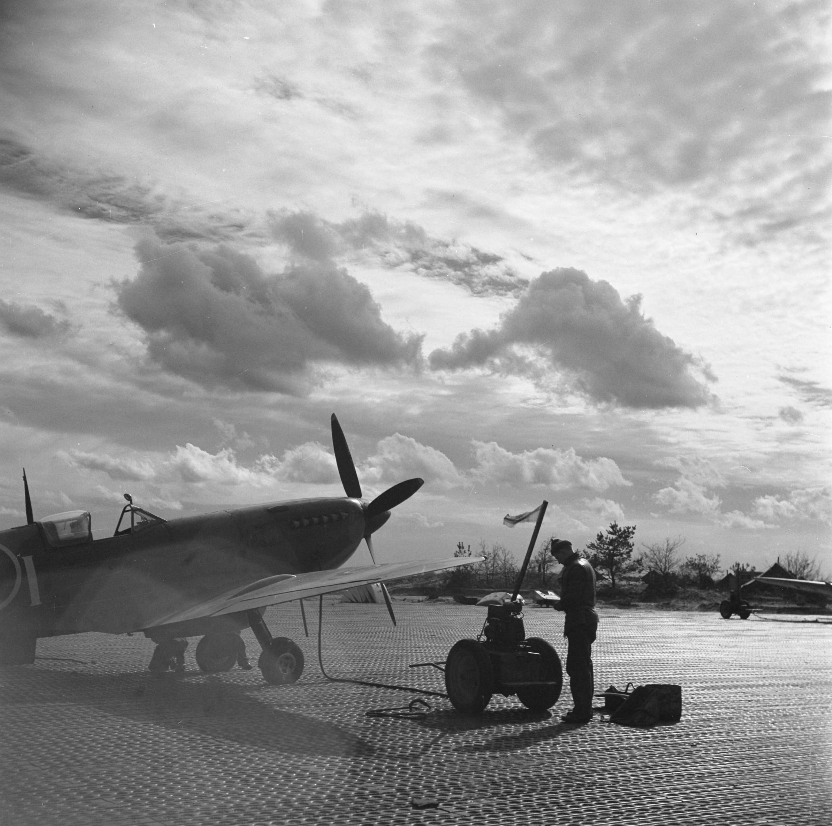 Grondpersoneel bezig met het vliegklaar maken van de jagers