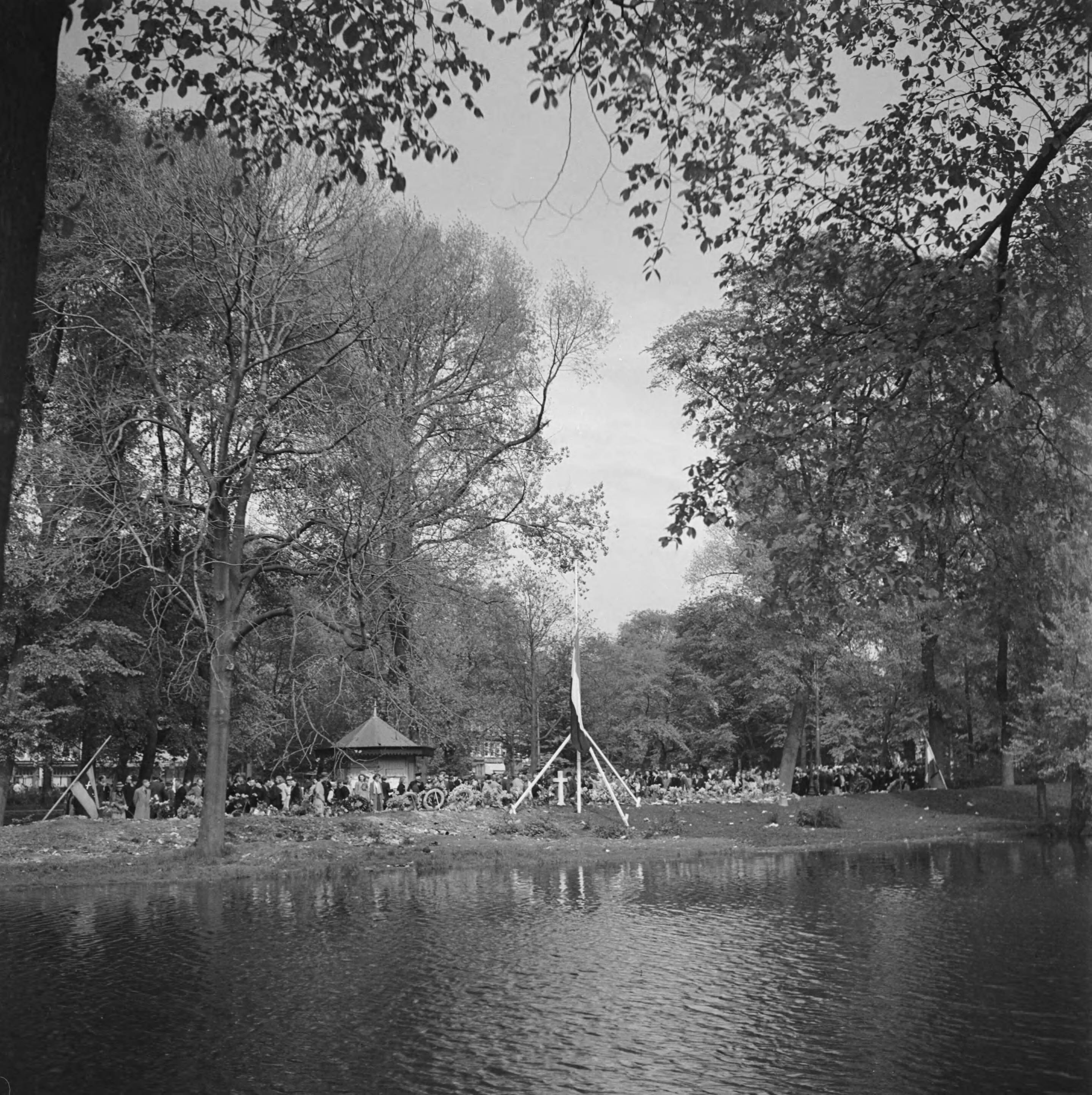 Gezicht op het Weteringplantsoen in Amsterdam waar op 12 maart 1945 dertig verzetsstrijders door de Duitsers werden gefusilleerd