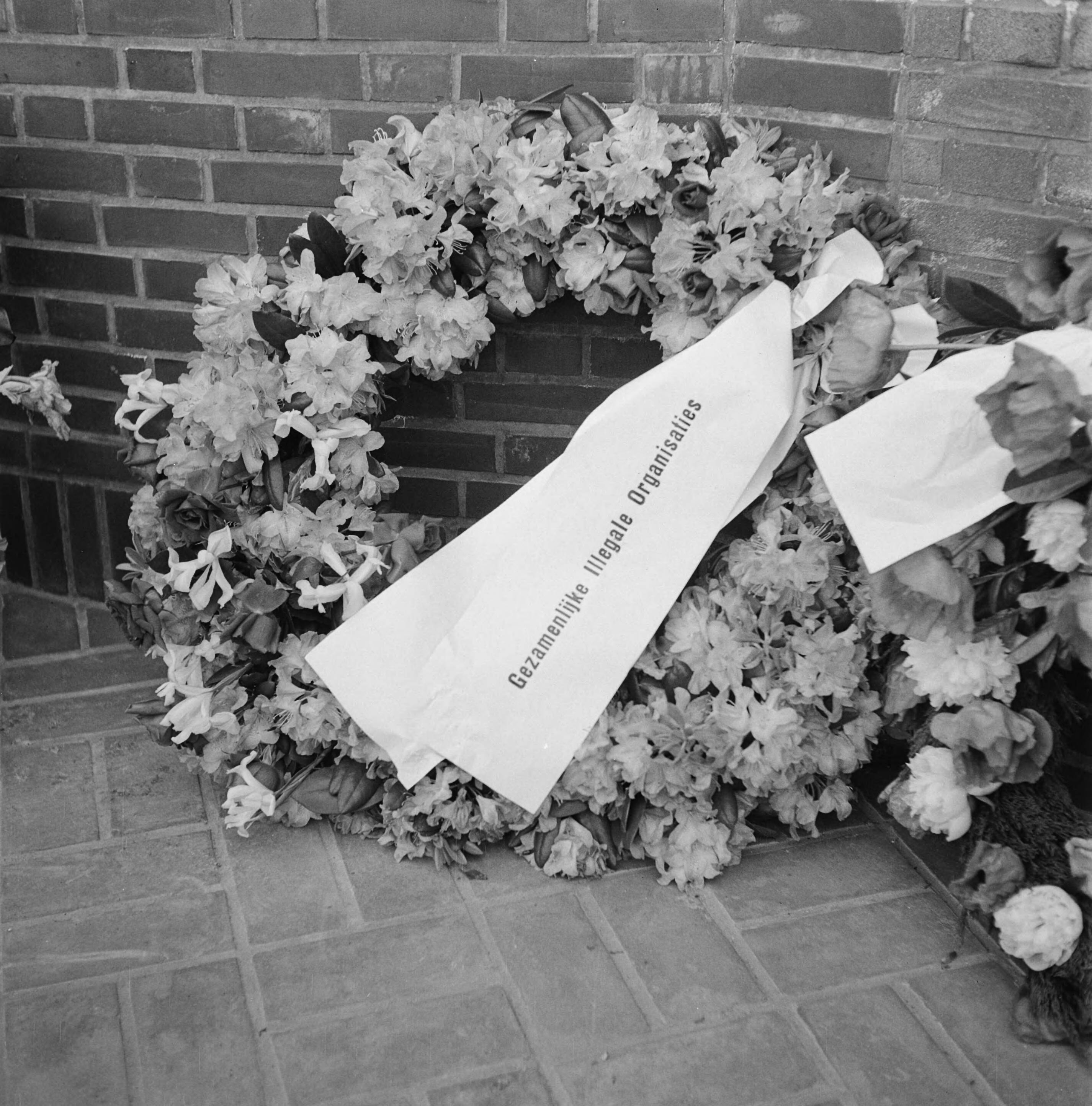 Krans van de Gezamenlijke Illegale Organisaties bij het oorlogsmonument Haagsche Schouw