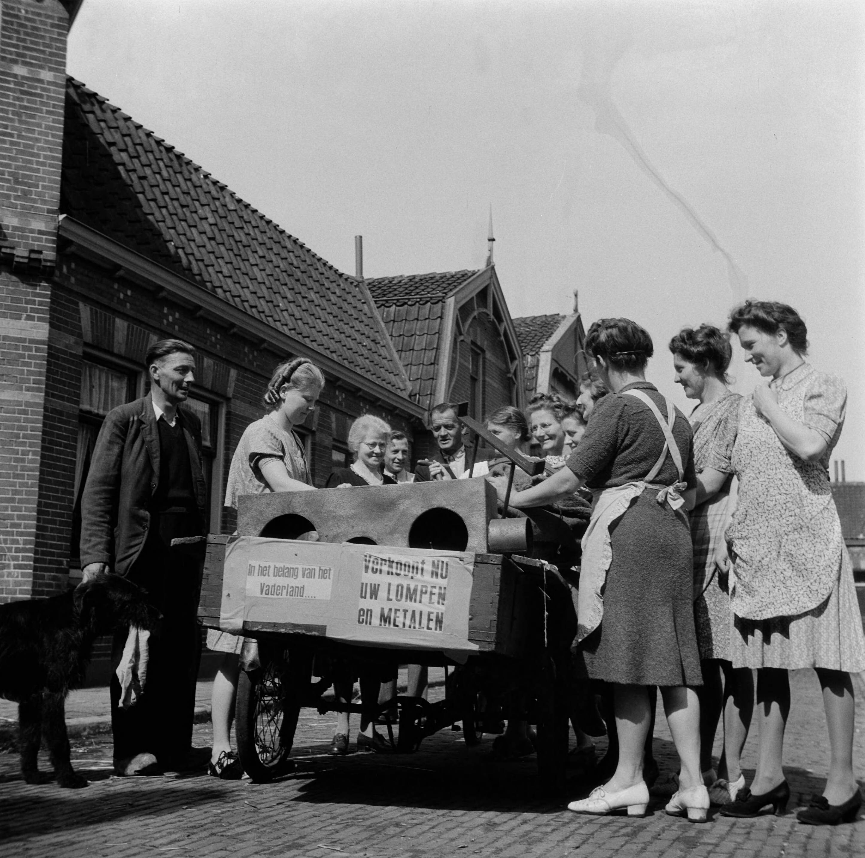 Amsterdam. Bevrijding. Straatbeelden oud metaal en lompen wordt met een handkar opgehaald