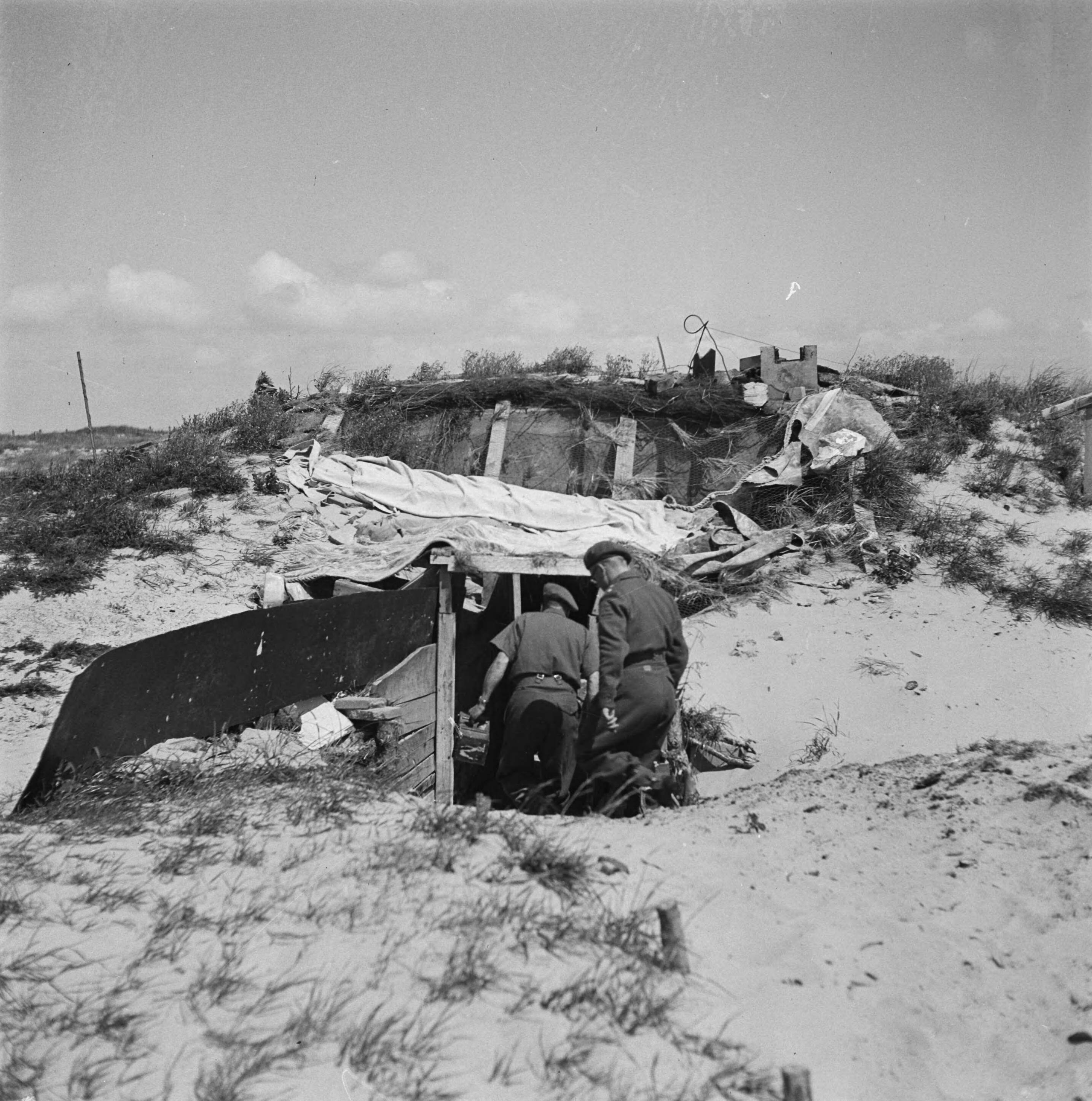 Serie: Het slopen van de Atlantikwal. Tussen Zandvoort en IJmuiden is men bezig de Atlantikwal op te ruimen. Kanonnen worden gedemonteerd, bunkers worden opgeblazen en mijnen geruimd. Springlading wordt aangebracht