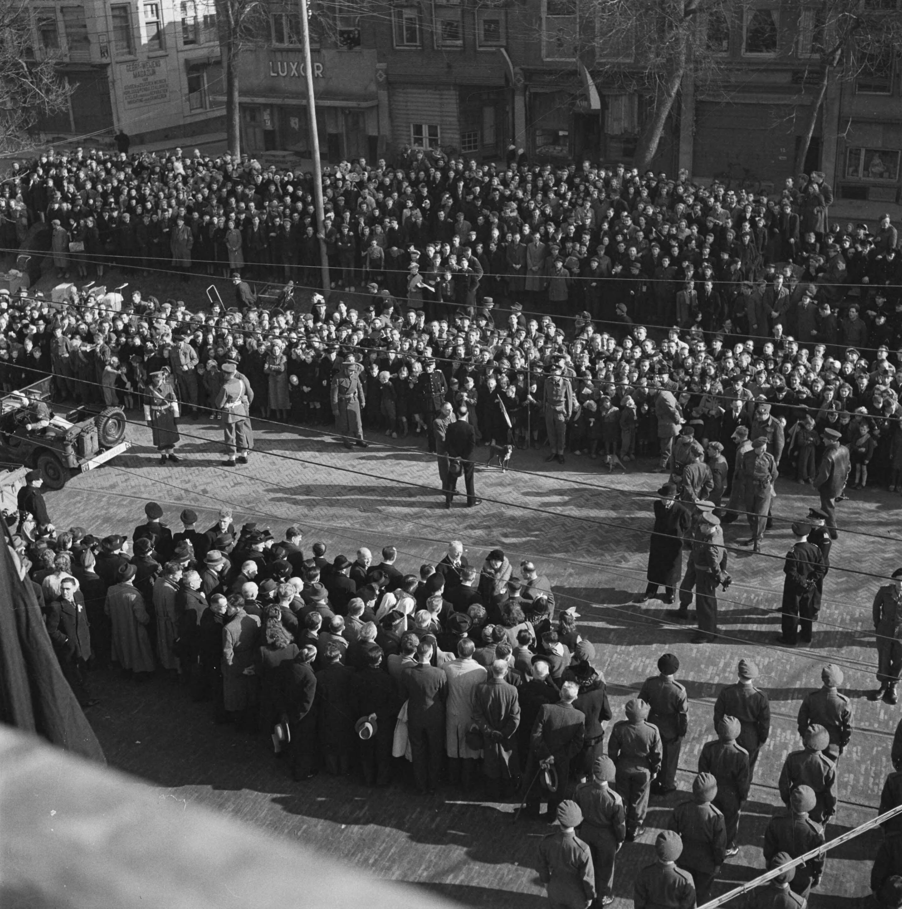 Vlissingen. Bellamypark. Koningin Wilhelmina spreekt met een drietal mannen