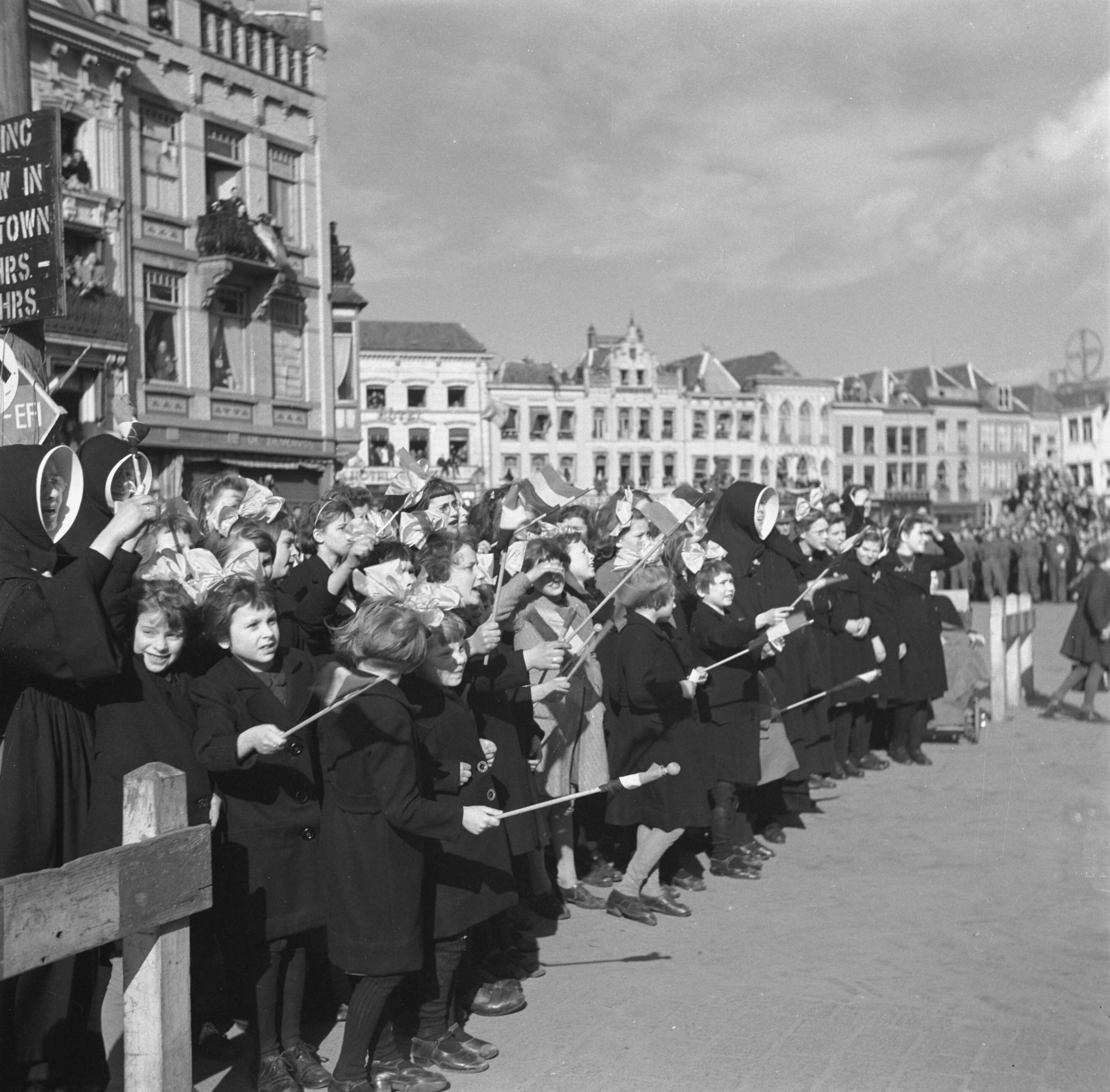 's-Hertogenbosch. Kinderen en nonnen met vlaggetjes