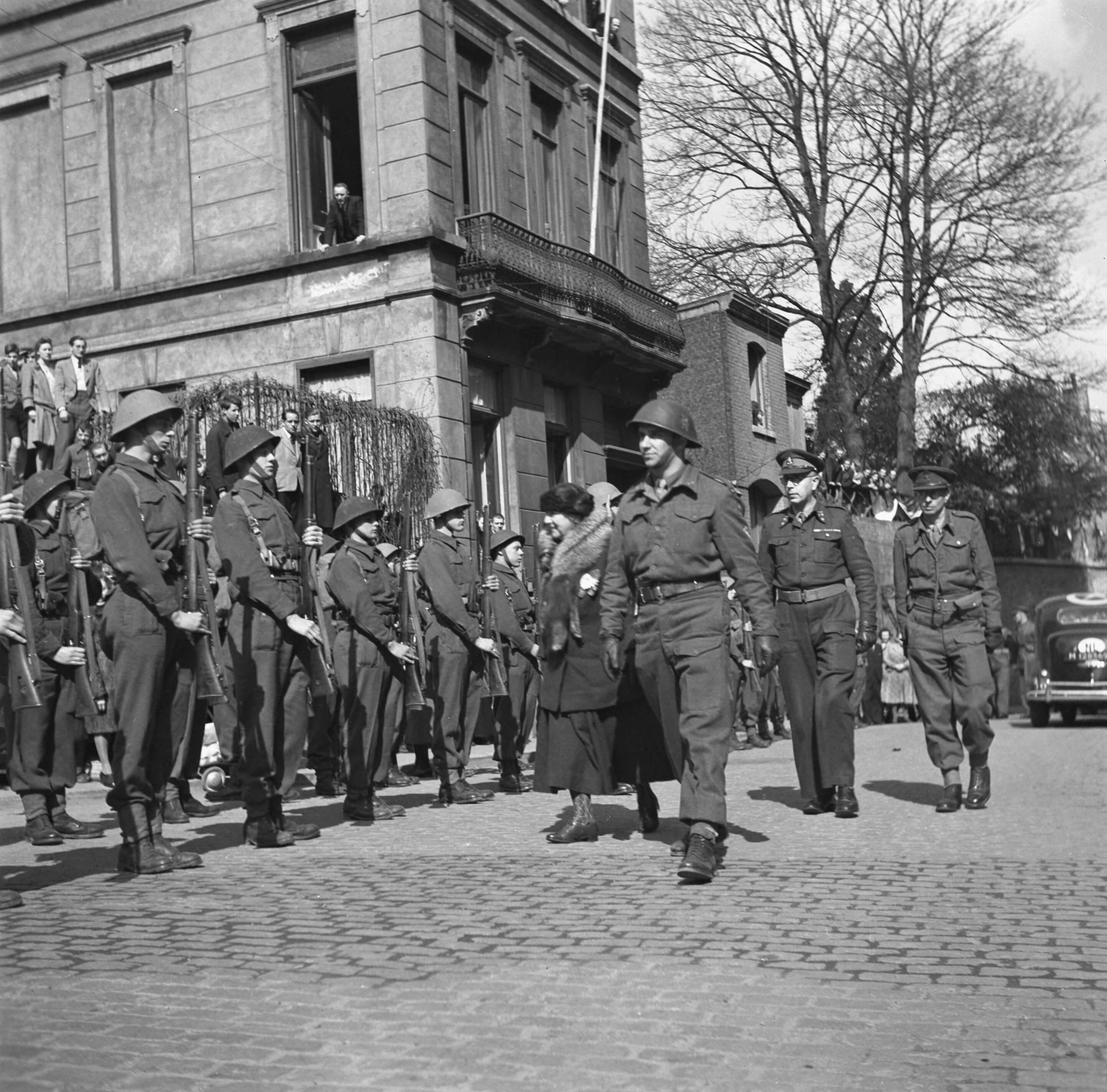 Maastricht. Inspectie van een erewacht door koningin Wilhelmina