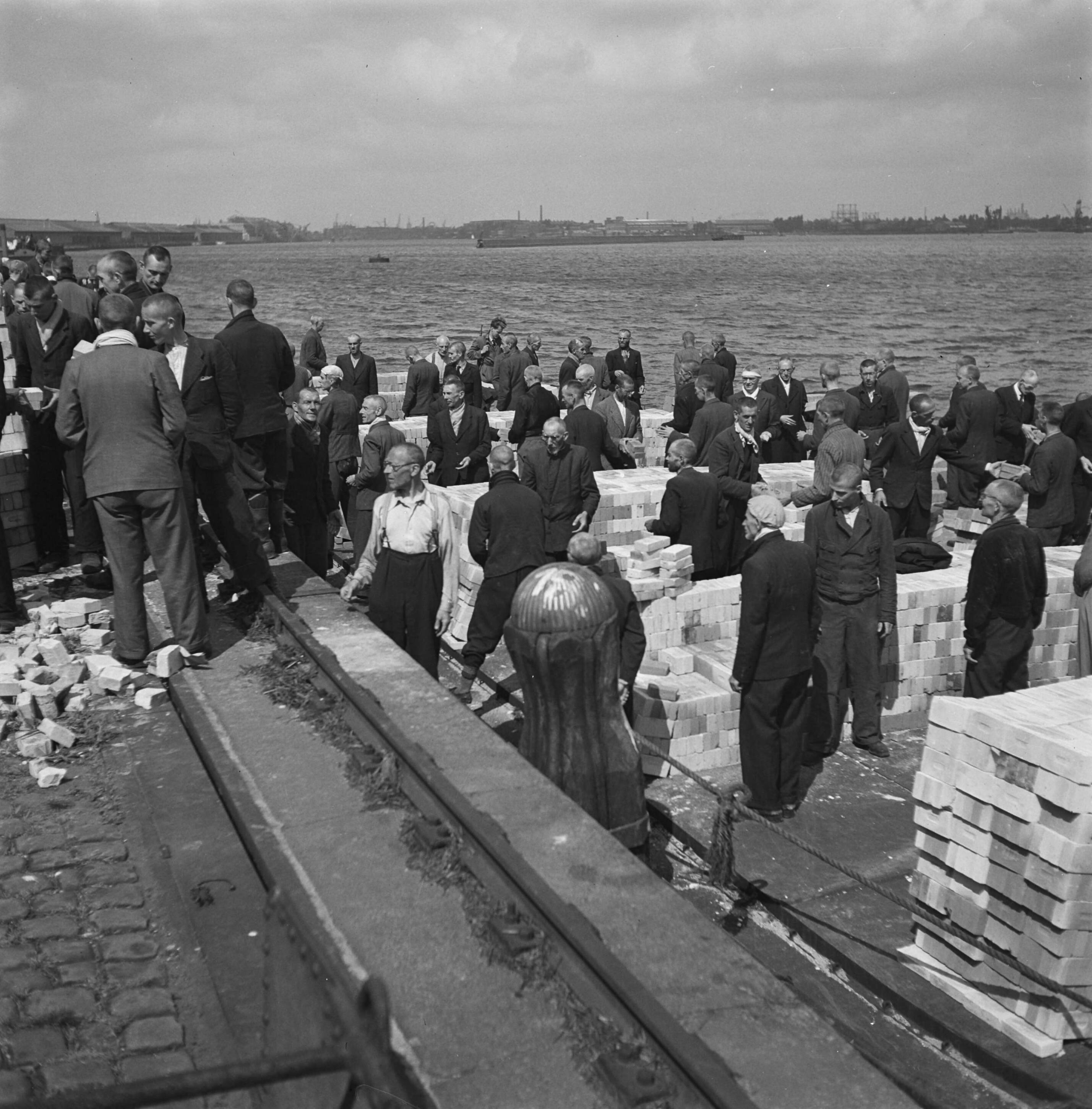 Reportage van het interneringskamp op de Levantkade te Amsterdam. Nu zijn er ca.
