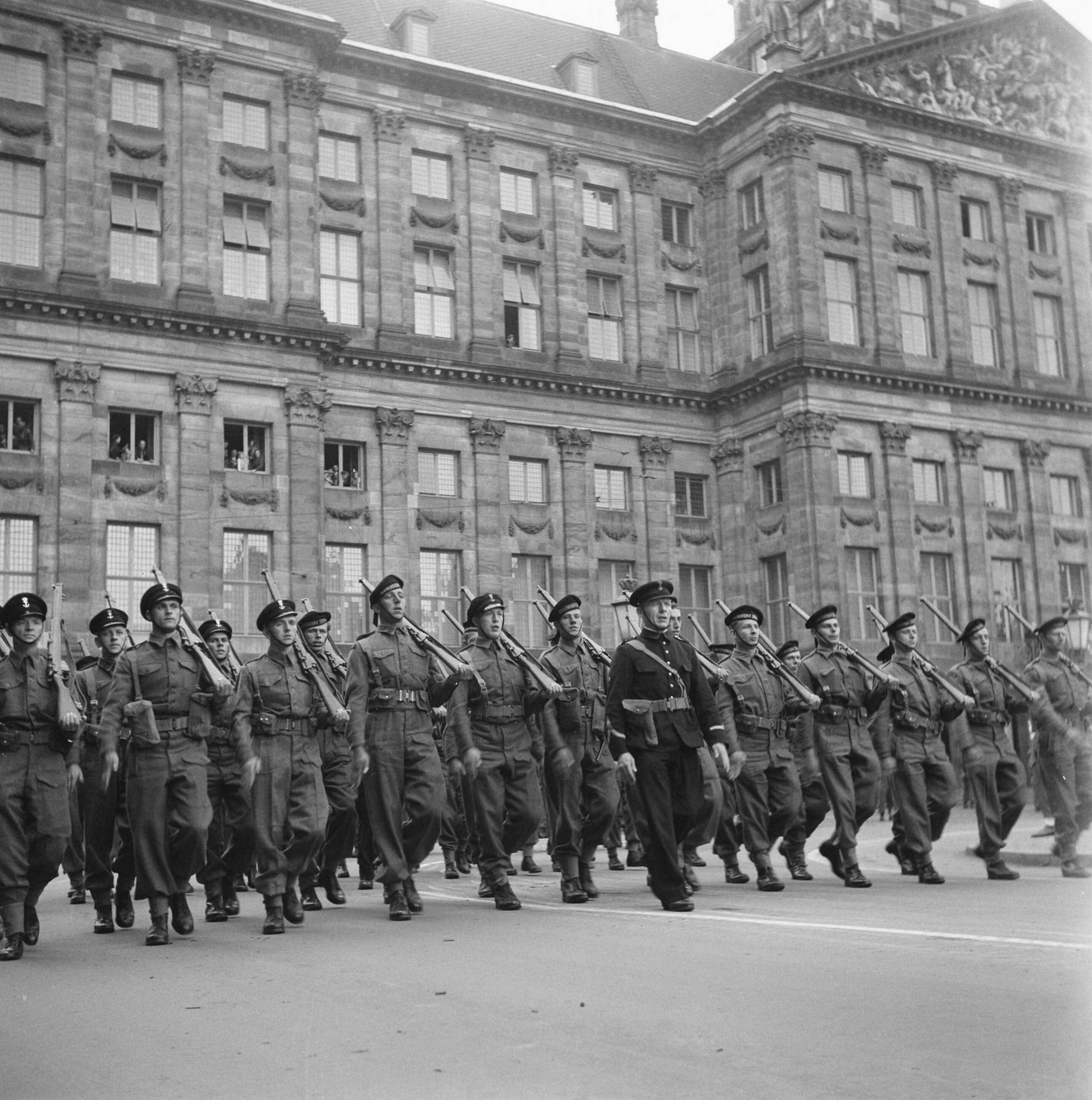 Defilé voor het Paleis op de Dam. Manschappen van de Koninklijke Marine