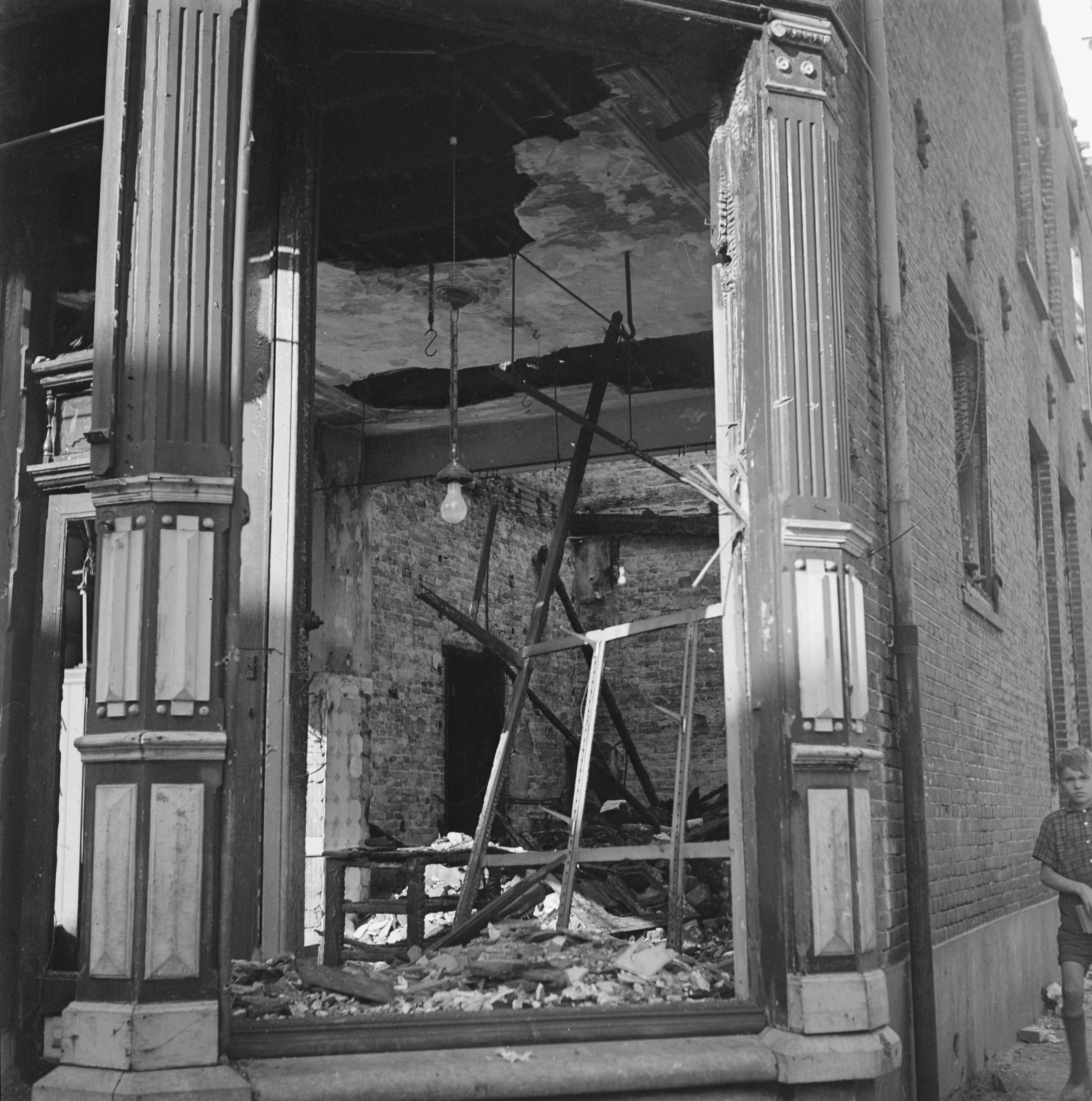 Binnenkant van een gebouw totaal verwoest