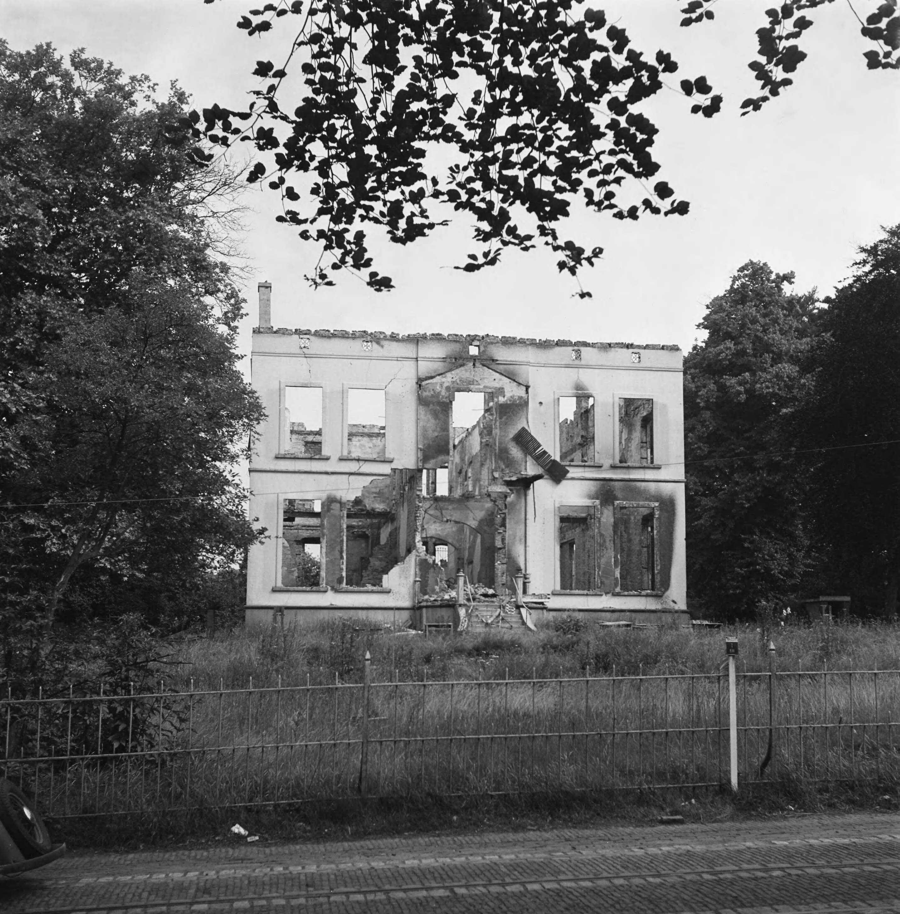 De ruïne van Villa Rijnsteijn, Utrechtseweg, gelegen tussen het voormalige St. Elisabeths Gasthuis en het Christelijk Lyceum