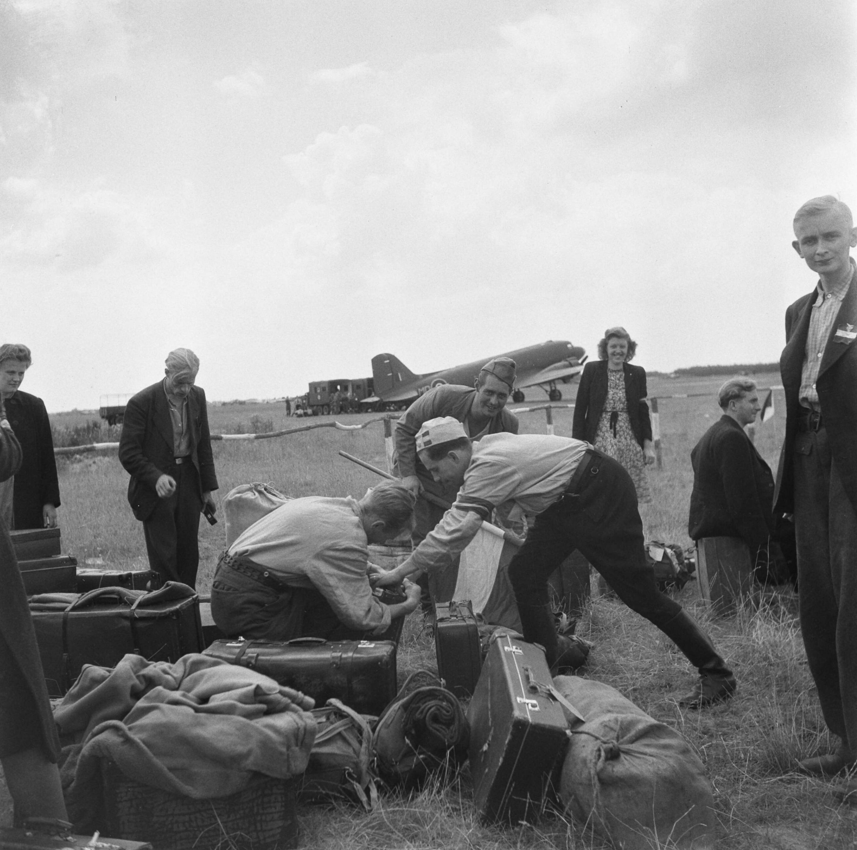 Vliegveld Eindhoven. Bagage wordt verzameld