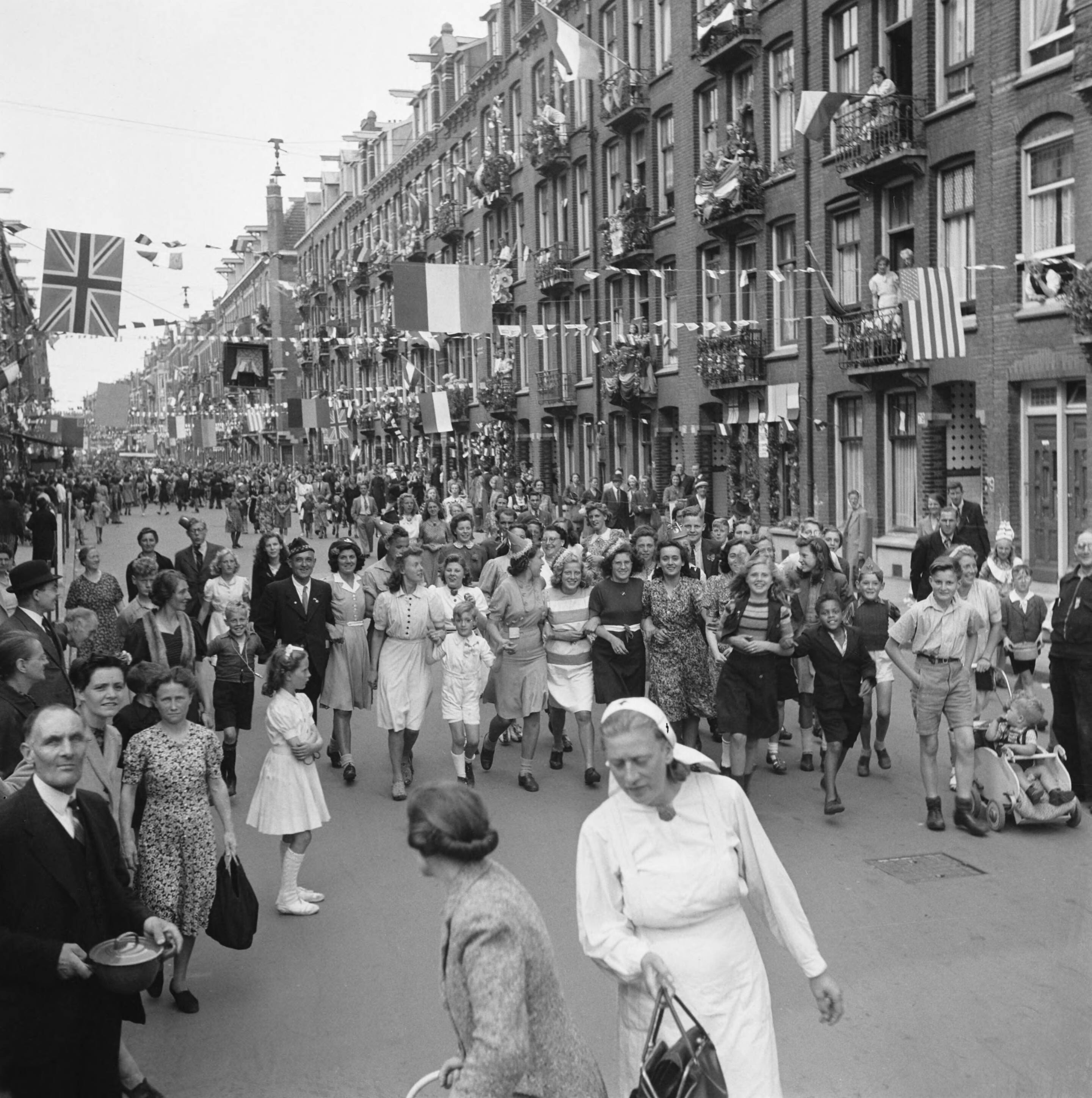 Grote groepen Amsterdammers bewegen zich door de straten. Hier de Rustenburgerstraat in De Pijp