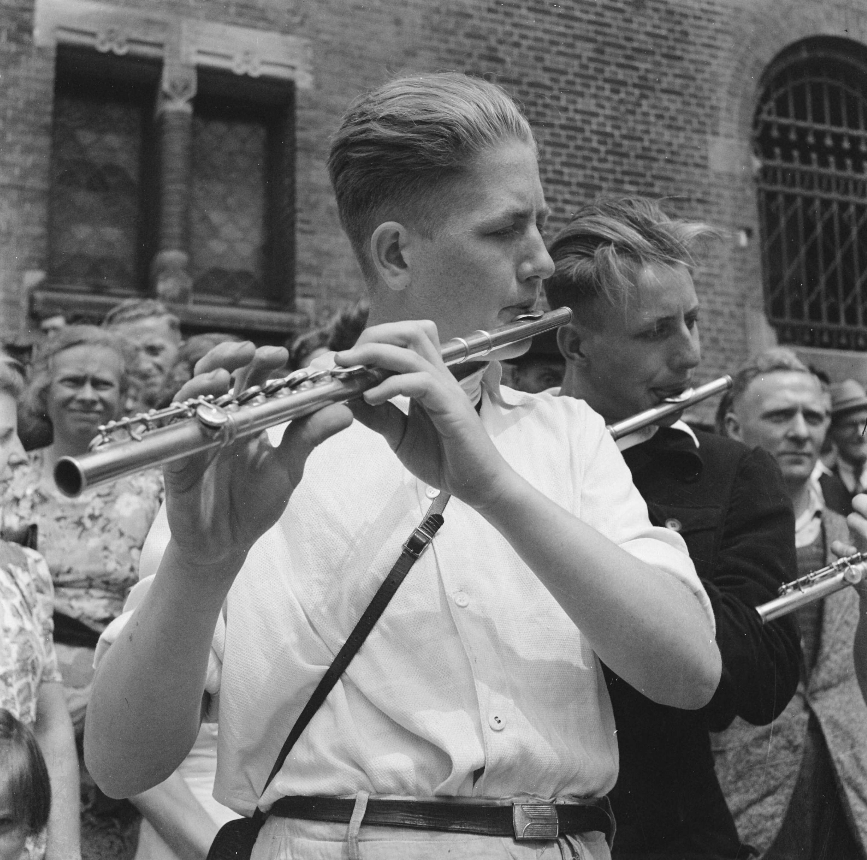 Twee jongens met dwarsfluiten